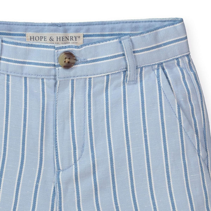 Our modern fit classic short will be the one your boy reaches for every day, on special occasions and weekend play dates alike. Features soft 100% organic cotton, faux horn button, side pockets, back flap pockets, and an adjustable waistband for ultimate comfort and superior fit. These are sure to be worn, loved, and passed down again and again!