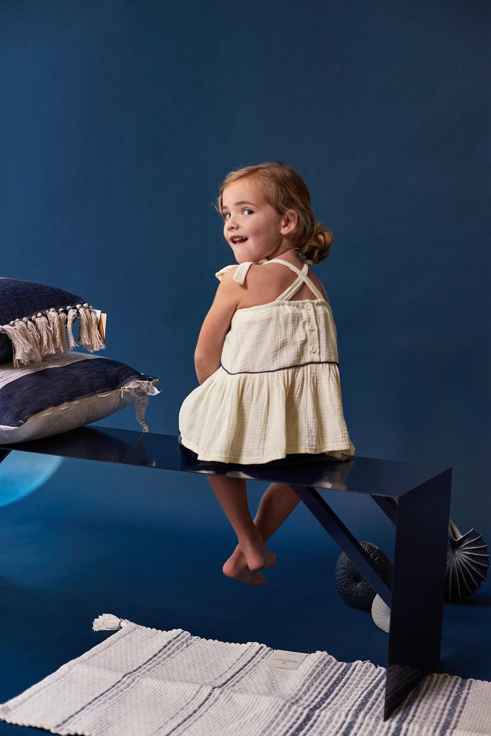 Fancy enough, but oh so comfy for everyday adventures, this peplum top with just enough cool details (cross tie at the back, contrast piping) is perfect with leggings or denim skirt.