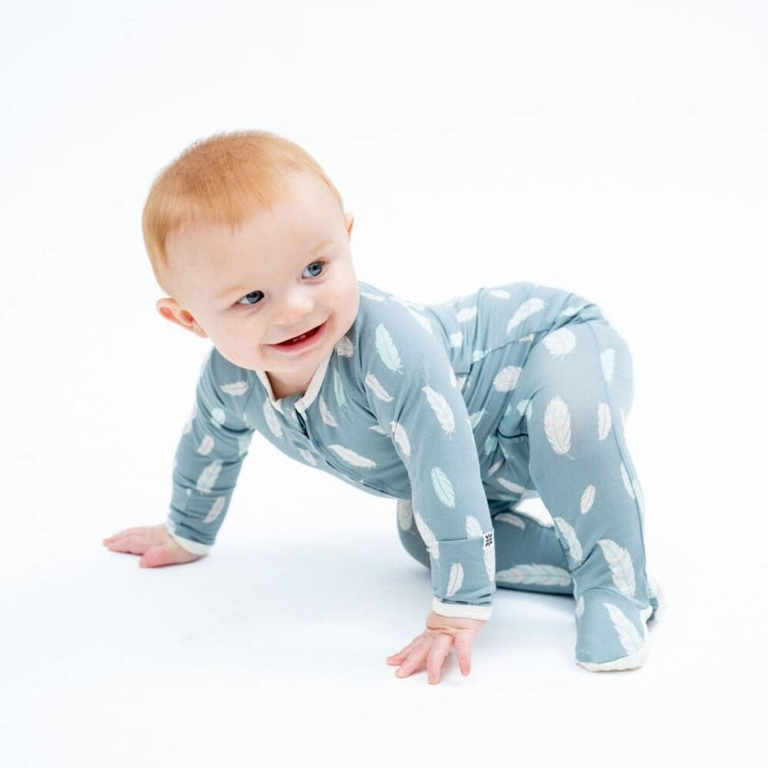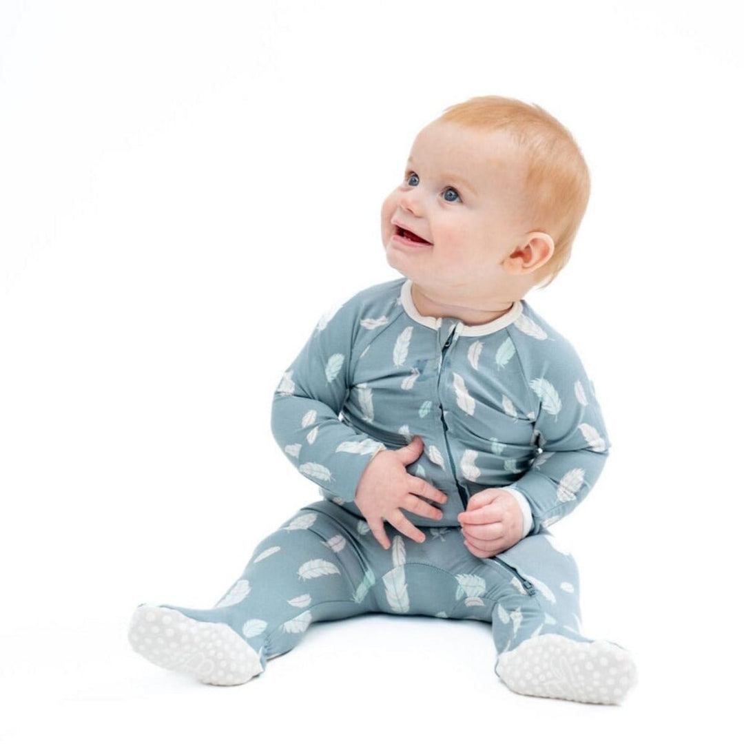 Ask and you shall receive. This yummy footie is equipped with a smooth 2-way zipper, silicone grips on the foot pads and fold-over handcuffs. Plus our silky-soft fabric hugs in all the right places to show off those baby curves.