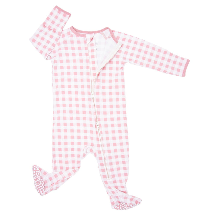 Ask and you shall receive. This yummy footie is equipped with a smooth 2-way zipper, silicone grips on the foot pads and fold-over handcuffs. Plus our silky-soft fabric hugs in all the right places to show off those baby curves.