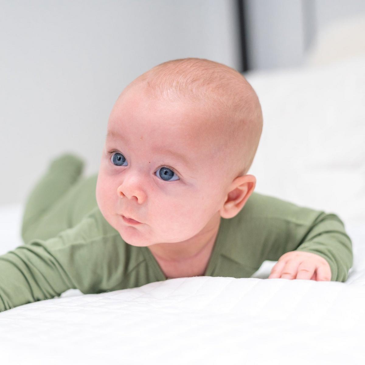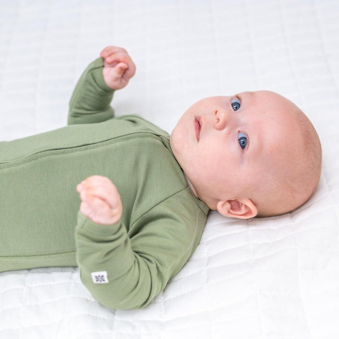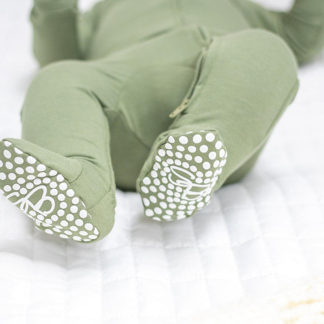 Ask and you shall receive. This yummy footie is equipped with a smooth 2-way zipper, silicone grips on the foot pads and fold-over handcuffs. Plus our silky-soft fabric hugs in all the right places to show off those baby curves.