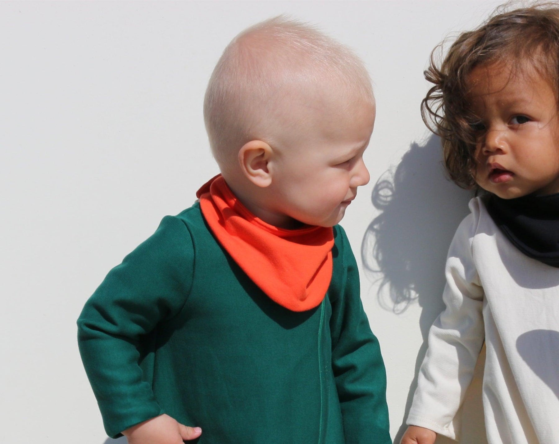 Made of durable, soft and easy to wash sustainable fabrics. Great for rivers of dribble, spoonfuls of food and whatever someone rolling on the ground might find themselves wearing.