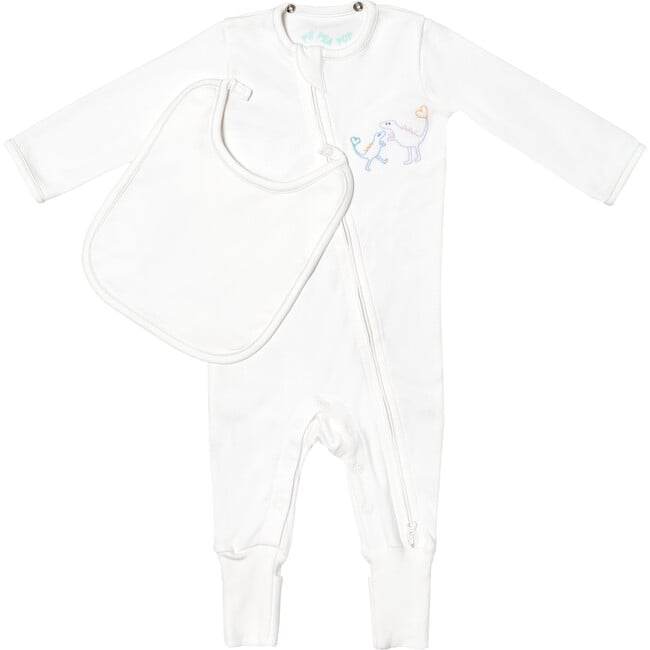 Suitable for all-day, everyday wear and the only garment of clothing your baby needs for their first year of life. Revolutionary features include a detachable bib, fold-over footies, a two-way zipper, and leg snaps for the easiest changes. Sustainably and ethically made with ultra-soft 100% GOTS-certified organic Pima cotton.