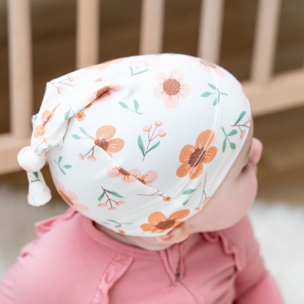 An absolute must have from newborn to 3 months. These sweet hats are adjustable in height and provide the perfect amount of stretch to fit like a glove. Great for helping new babies regulate body temperature.