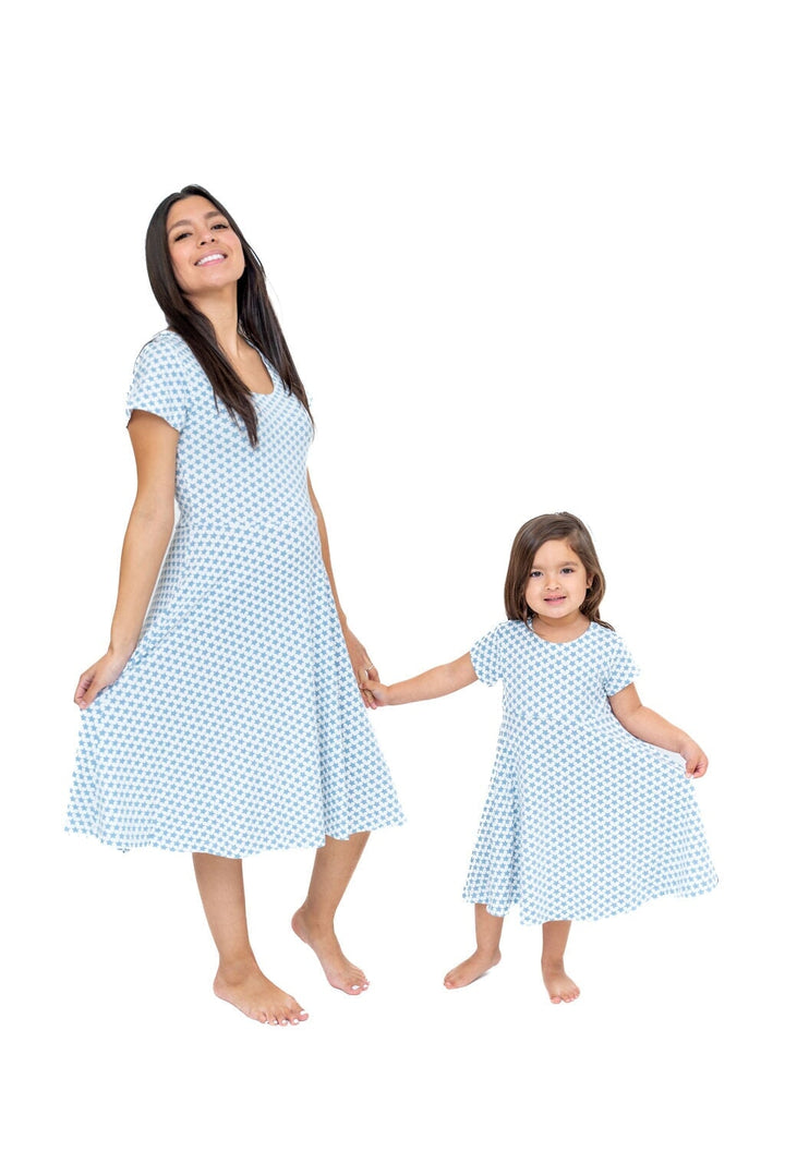 Mommy Swirly Girl Dress - Hearts and Stars Blue