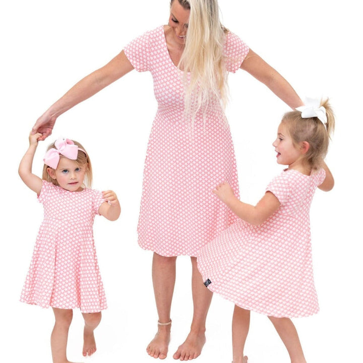Mommy Swirly Girl Dress - Hearts and Stars Pink