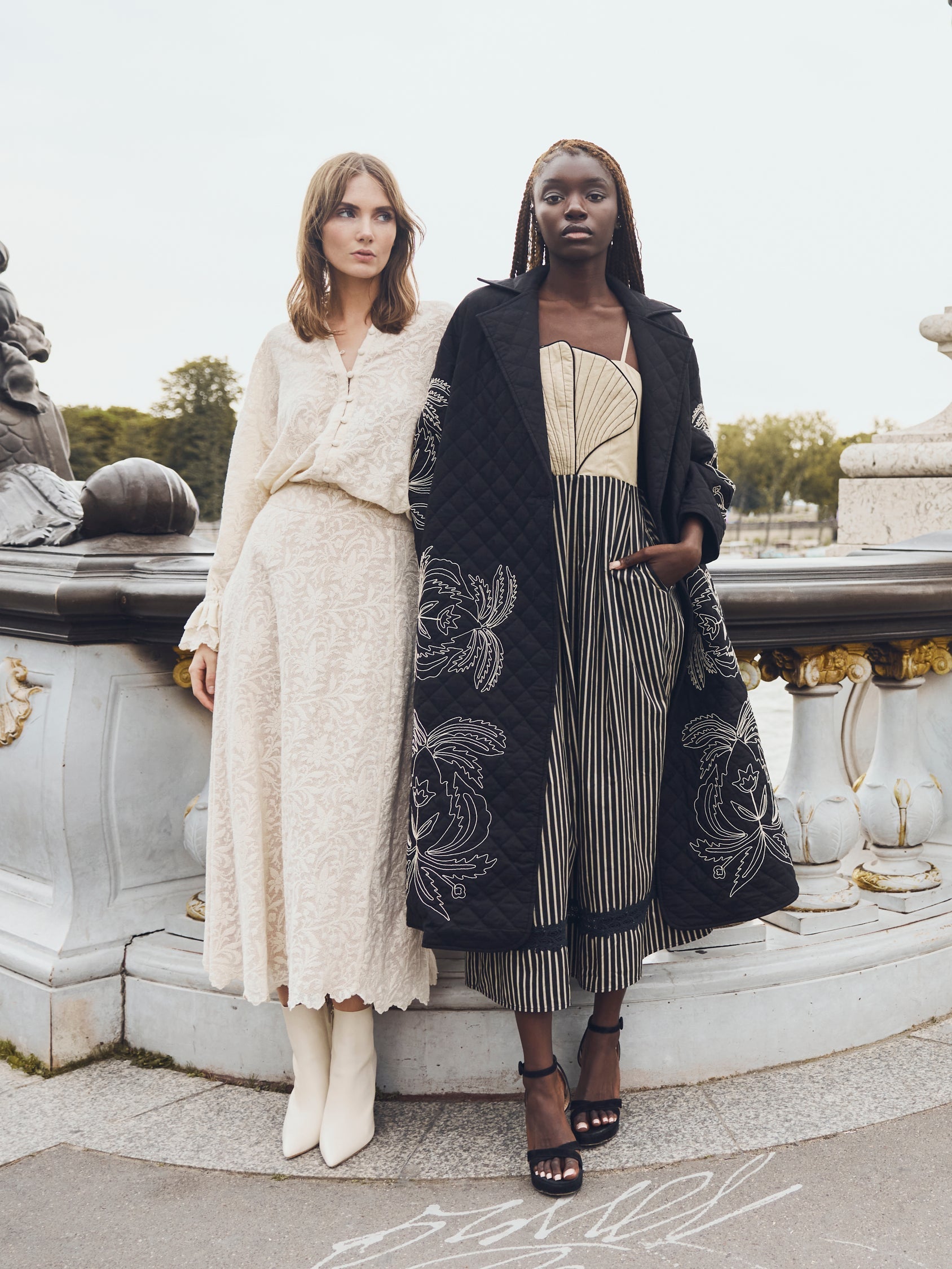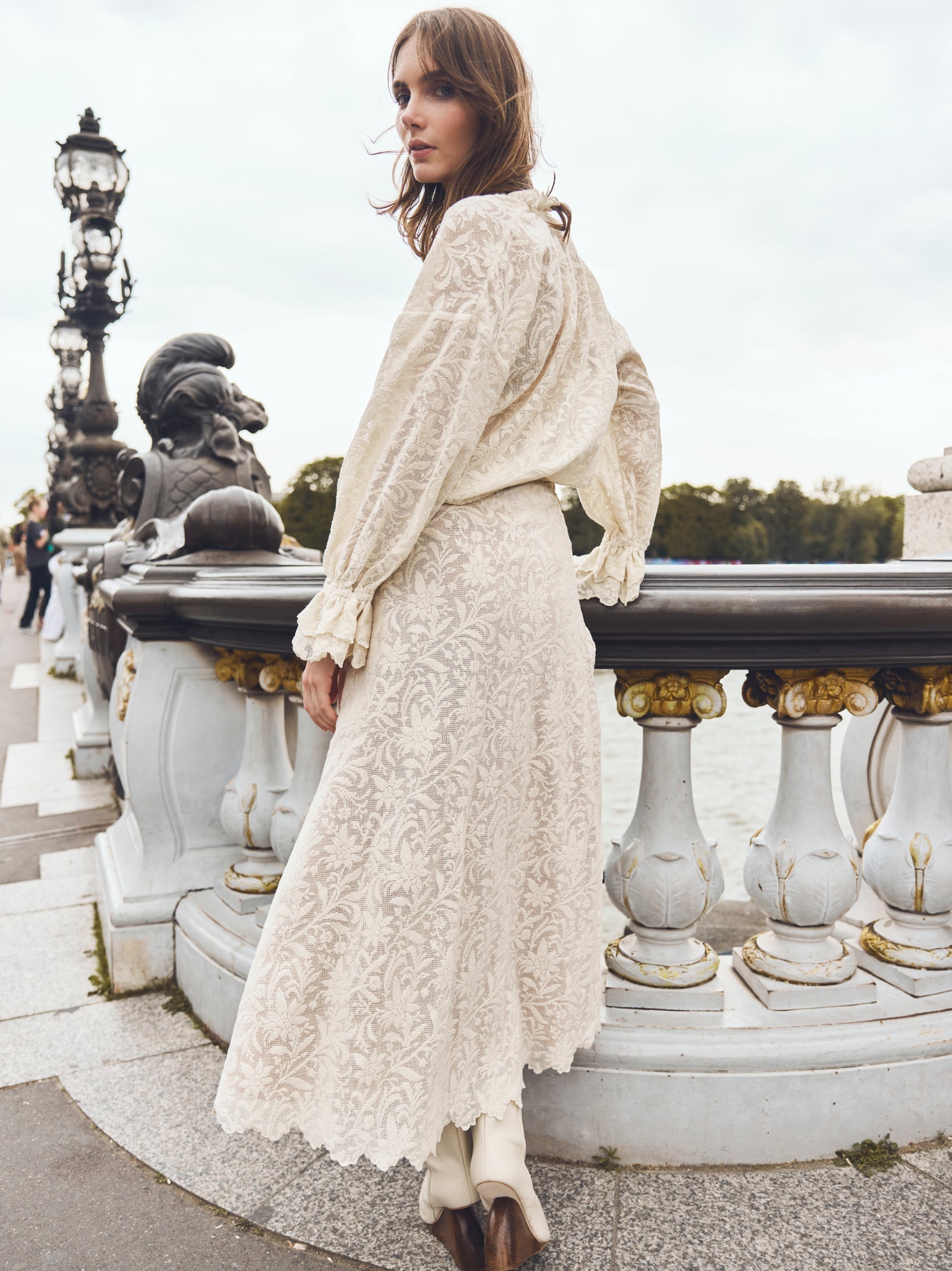 Drawing inspiration from iconic skirt silhouettes seen in the Edwardian era- The Carly Midi Skirt features a high waist, an A-line silhouette that flows along the body. Crafted in ivory hand-crocheted lace. The ankle-grazing hemline is trimmed with scallop lace for a final touch of romance. An invisible side zipper with a hook-and-eye closure creates the perfect fit.