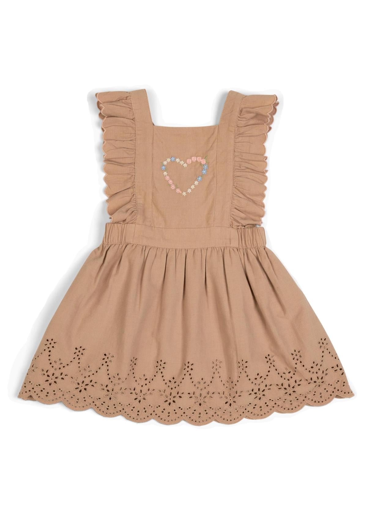 Details 100% Corduroy Cotton with anglaise embroidered detailing throughout. Cross-back with 3 cm of adjustable length to grow with child. Elastic waistband, comfortable skirt fit, with cotton lining.