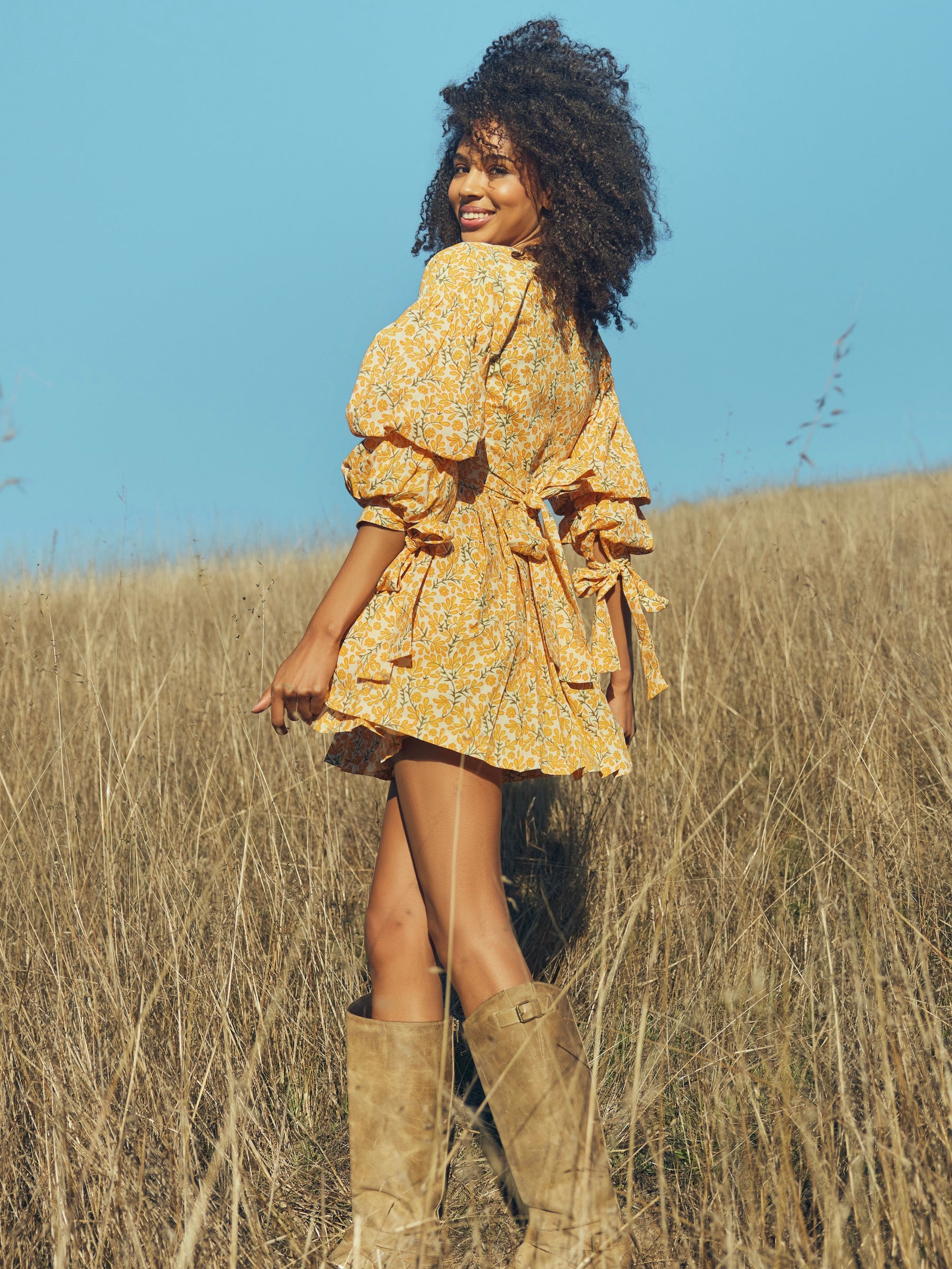 The Rachael is a playful a-line wrap dress. The full pleated mini skirt offers a nod to the timeless design of a vintage tennis look. Full, gathered balloon sleeves & adjustable ties at the sleeves add a romantic touch to the piece. You won't be playing on the courts in this dress, but you'll be playing with hearts