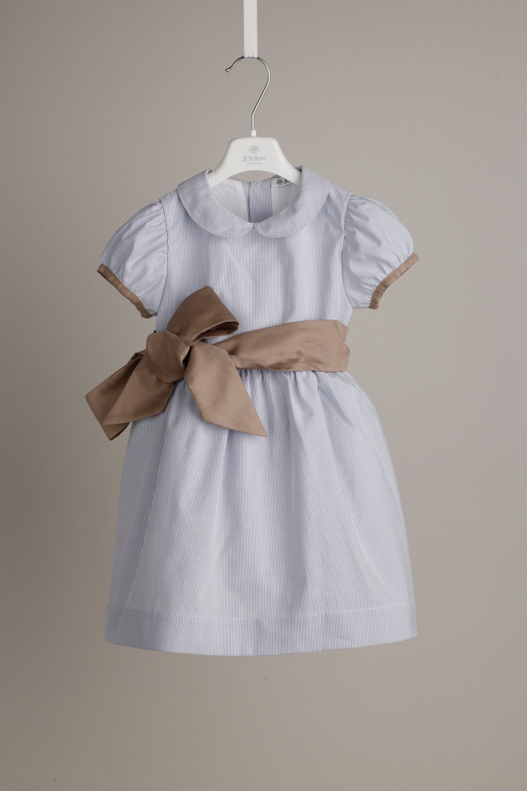 Cotton dress for this dress with littel stripes (white & light blue) brown details. 100% made in Italy