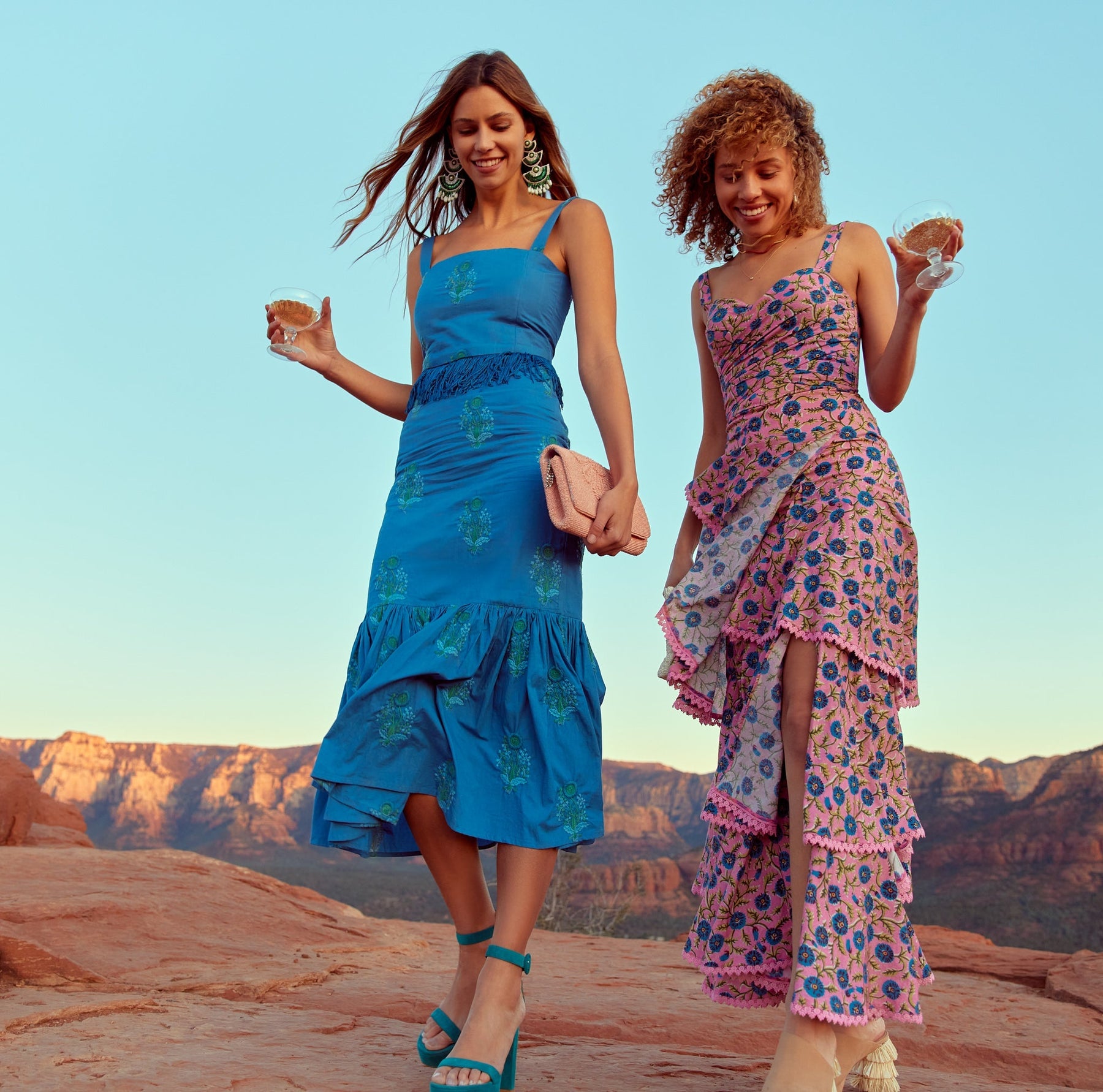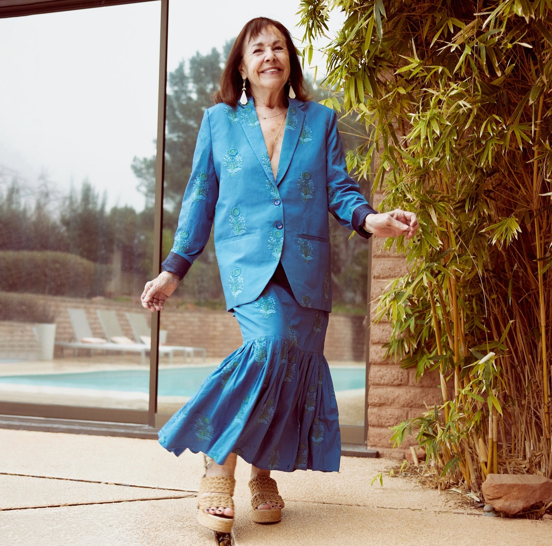 Brook Embroidered Fluted Skirt - Prussian Blue/Placed Floral Embroidery
