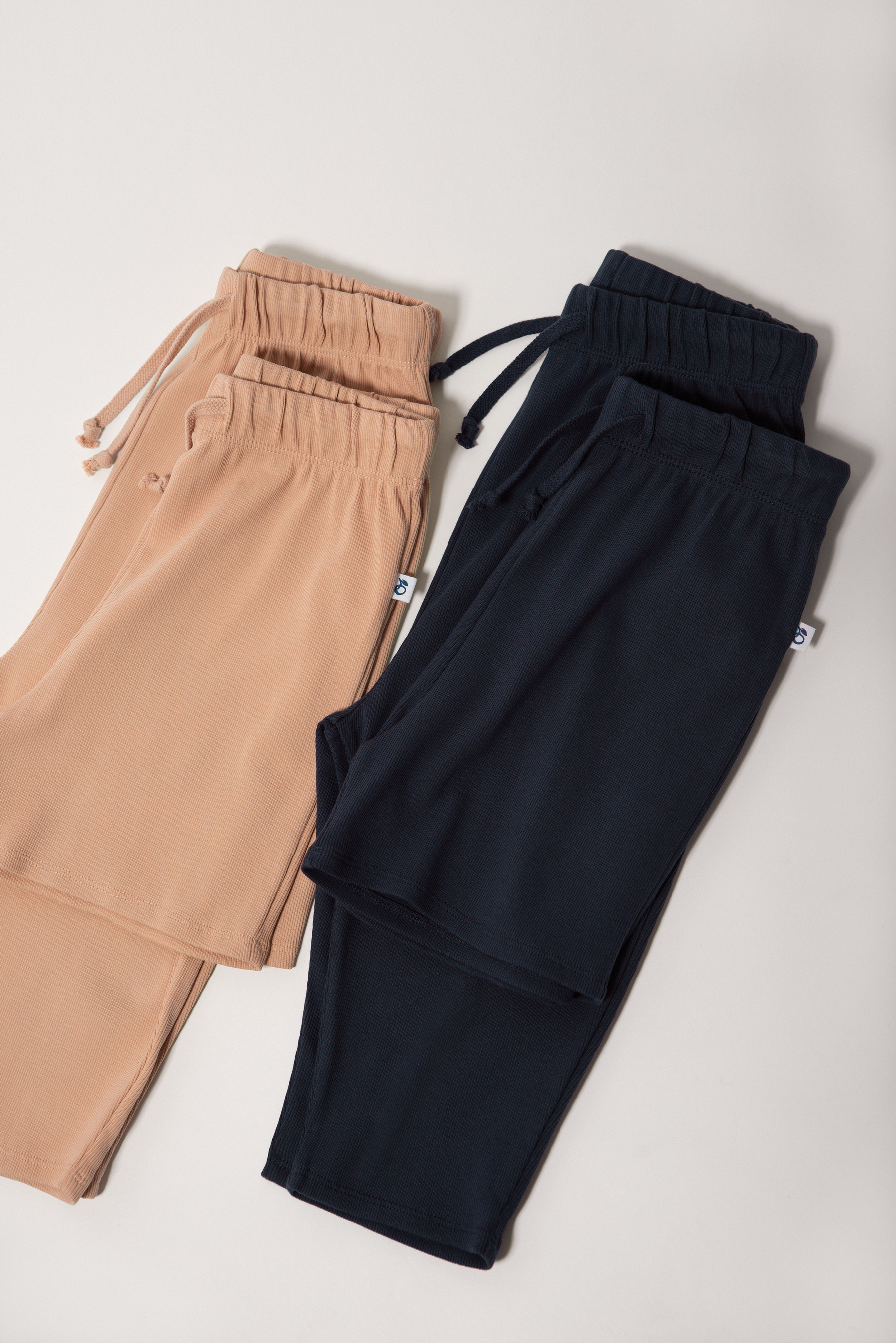 The relaxed fit of these lounge pants gives them a laid-back look that can be dressed up or down. Soft and lightweight, they're perfect for warmer days or for layering over your favorite leggings. The ribbed texture adds a little extra character, while the organic Pima cotton ensures a breathable feel and a luxurious finish. The drawstrings at the waist and cuffs make them easy to adjust to your desired fit. Whether you’re kid lounging and playing at home or going at school, these organic Peruvian Pima cotton lounge pants will have your kid feeling comfortable and looking great.