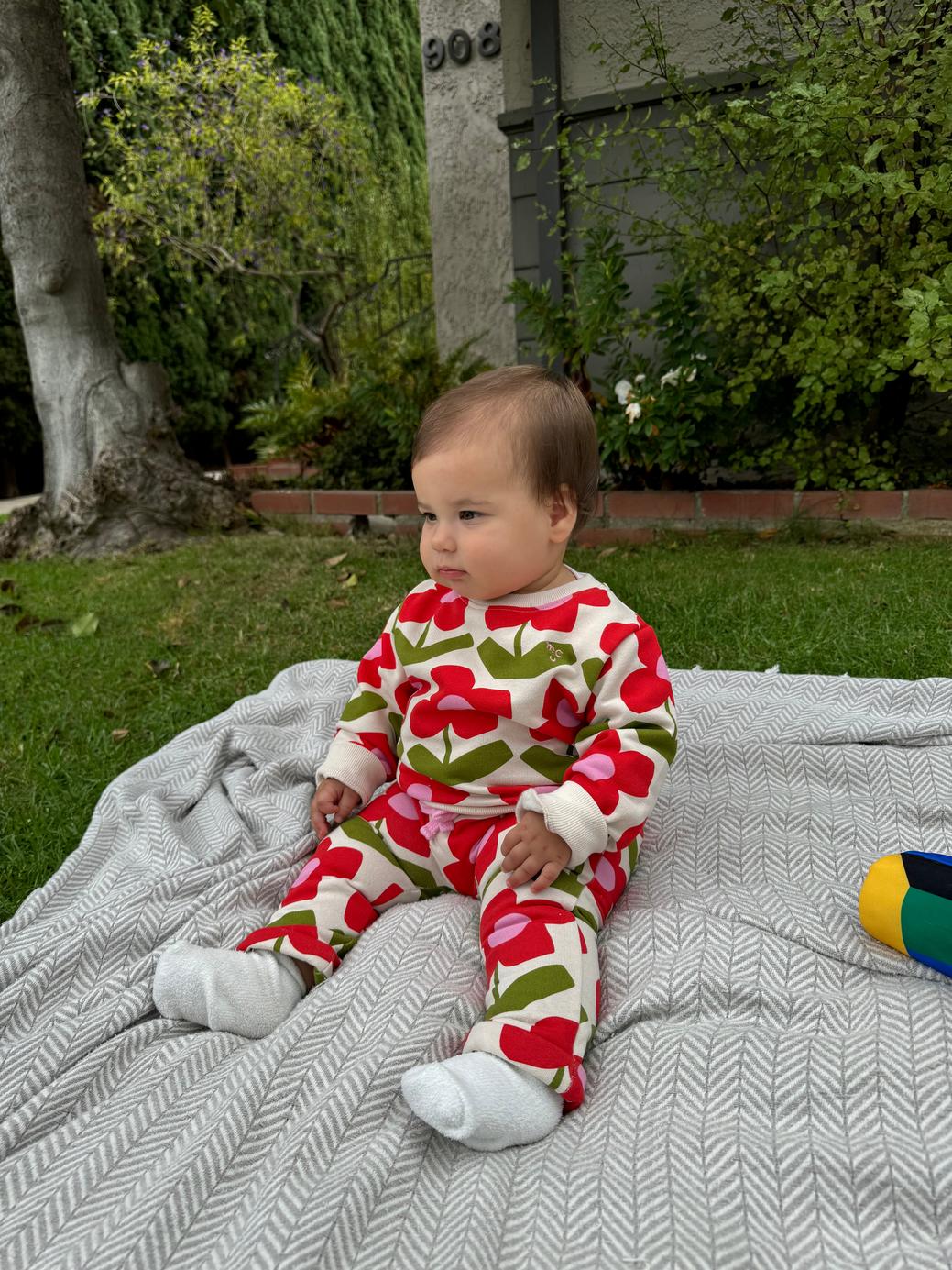 Our Baby Sweatshirts are extremely soft and comfortable. Featuring a repeating floral design, made from fleece and recycled cotton. The sweatshirt is designed with slightly dropped shoulders for a relaxed fit and a ribbed neck, sleeve endings and bottom hem. The snap buttons at the back allow for easy dressing. For each purchase, 1% of the sale goes to the restoration of the natural environment. Made in Portugal.