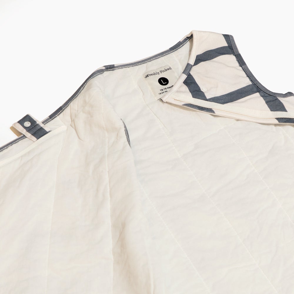 Meet the Sleep Sack, designed to help your baby have a cozy sleep. The large arm openings make it easy to slip on your babe. While the v-shape neckline keeps the fabric away from your baby's face for pure comfort. The soft breathable fabric makes it the perfect all-seasons sleeper. With two size options, your baby can continue to have a peaceful sleep as they grow.