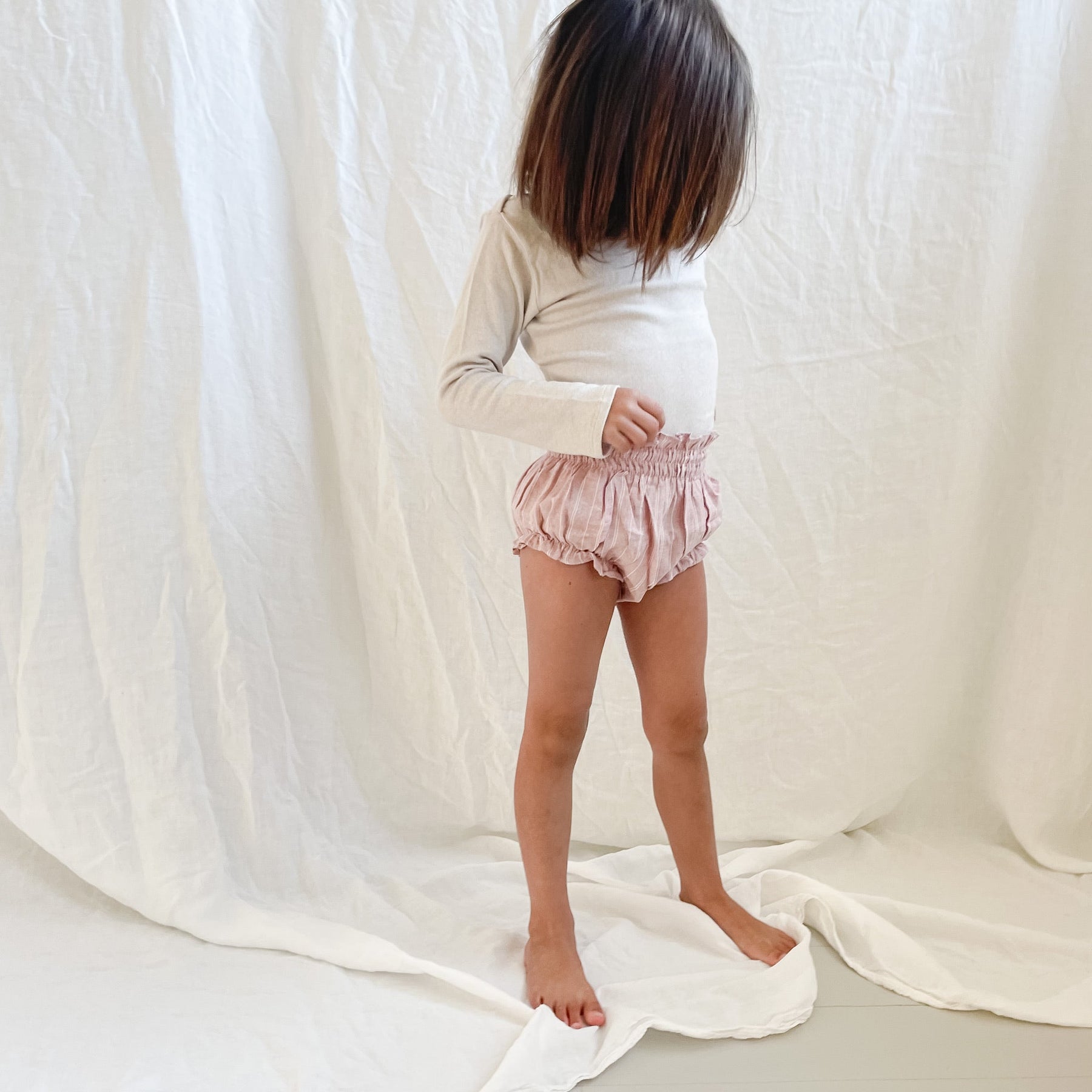 Part of the ORGANIC COLLECTION, our signature bloomies, sewn up in a beautifully soft organic hemp and cotton blend. Designed for long wear and comfort, bloomies are a must have item! Perfect under dresses. We pair ours with a gauzy tunic or flutter sleeve top. Great choice for a newborn gift.  55% hemp, 45% organic cotton