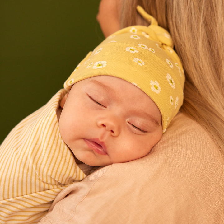 Keep baby covered top to toe with our organic cotton accessories. The knotted beanie is adjustable to ensure the perfect fit, and is an essential to prevent heat loss. To minimise shrinkage, this fabric has been pre-washed. * GOTS certified CU 862149 * 100% organic cotton rib * adjustable knotted top * folded hem detail