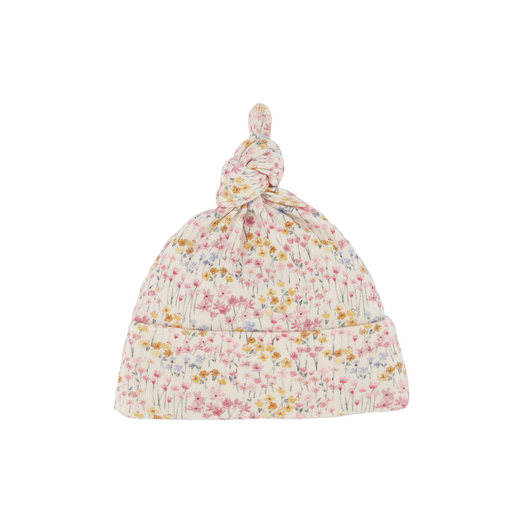 Cotton Knotted Beanie - Wildflower Mountain Print