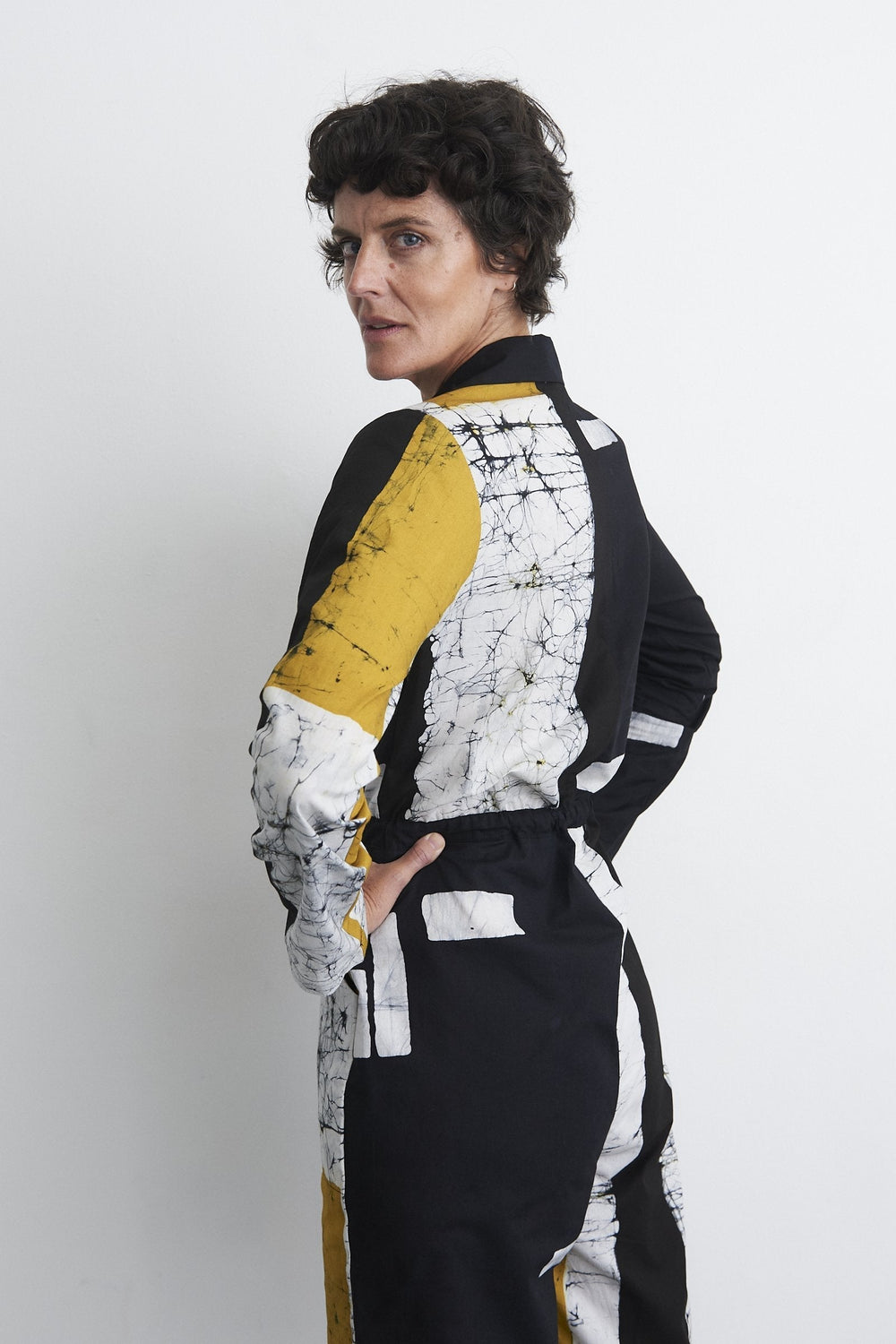 The Liberté Collection has been made in collaboration with Ombre Claire, a jewelry design studio and retail store base in Paris. Every inside cuffs is block printed with their design. Roll the sleeves up or down depending on your mood (arms and legs). This product was made from hand spun and hand woven natural cotton. It was naturally dyed and block printed by hand.