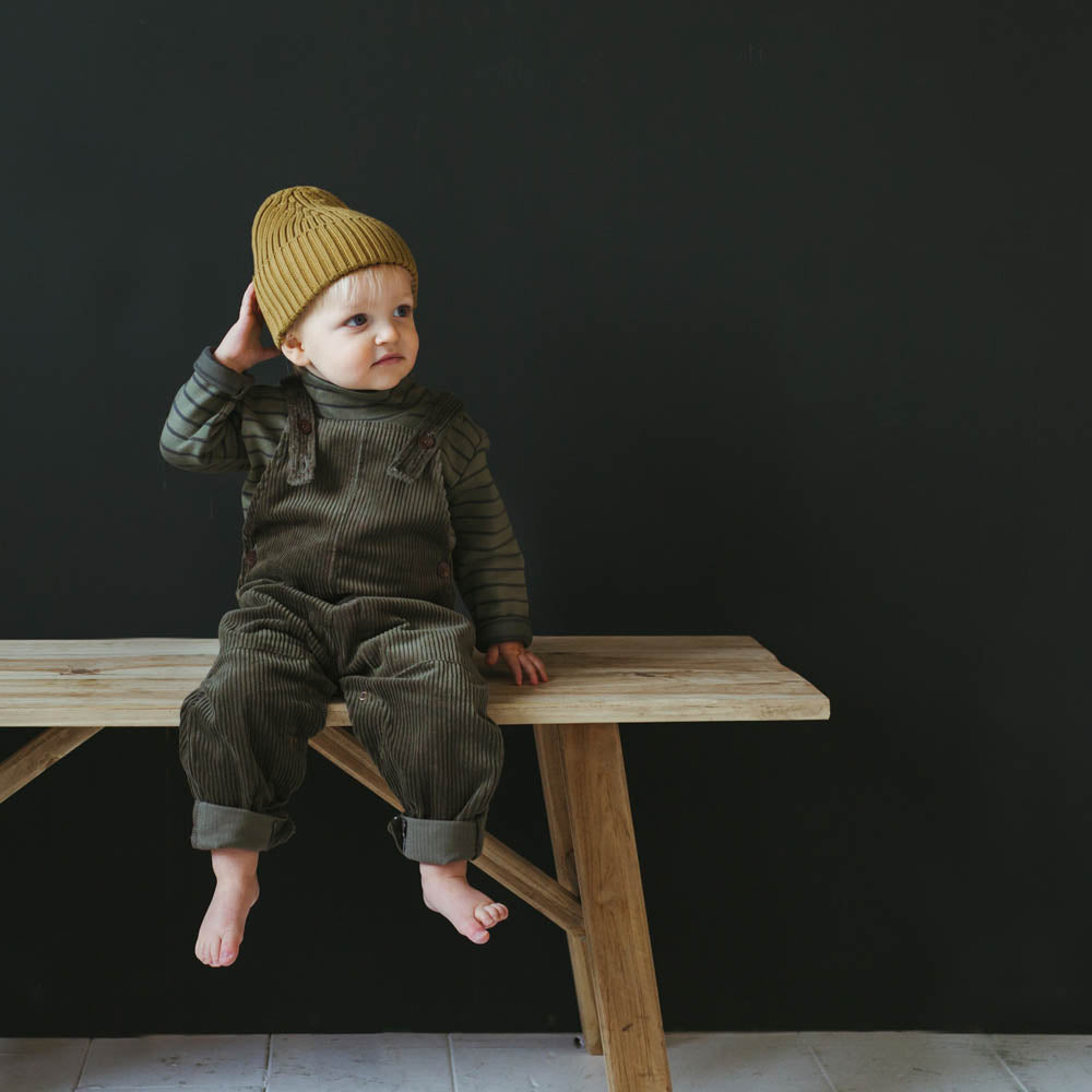 Buttery soft mock neck top with knitted stripe pattern. Snaps at neckline for easy changing and dressing (up to size 24 months). Regular fit. Pair with Kid Wild's footed pants or overalls for the sweetest fall look!