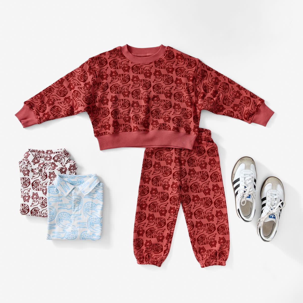 Our kids are living in these super comfy sweatpants! Made from our soft organic cotton with a soft elastic waistband. These easy pants look great with a t-shirt and ridiculously adorable with their matching sweatshirt. We love Tigers for many reasons, but did you know that each of their beautiful striped coats are unique, just like our fingerprints? We love this big cat's fierceness with an equally cute face. 100% organic cotton These sweats are sized to shrink in the wash. This season we added extra inches to our sizing, so you can wash them any way you want (though we still recommend drying on low). So choose your child's correct size, and if it seems big, it won't stay that way!