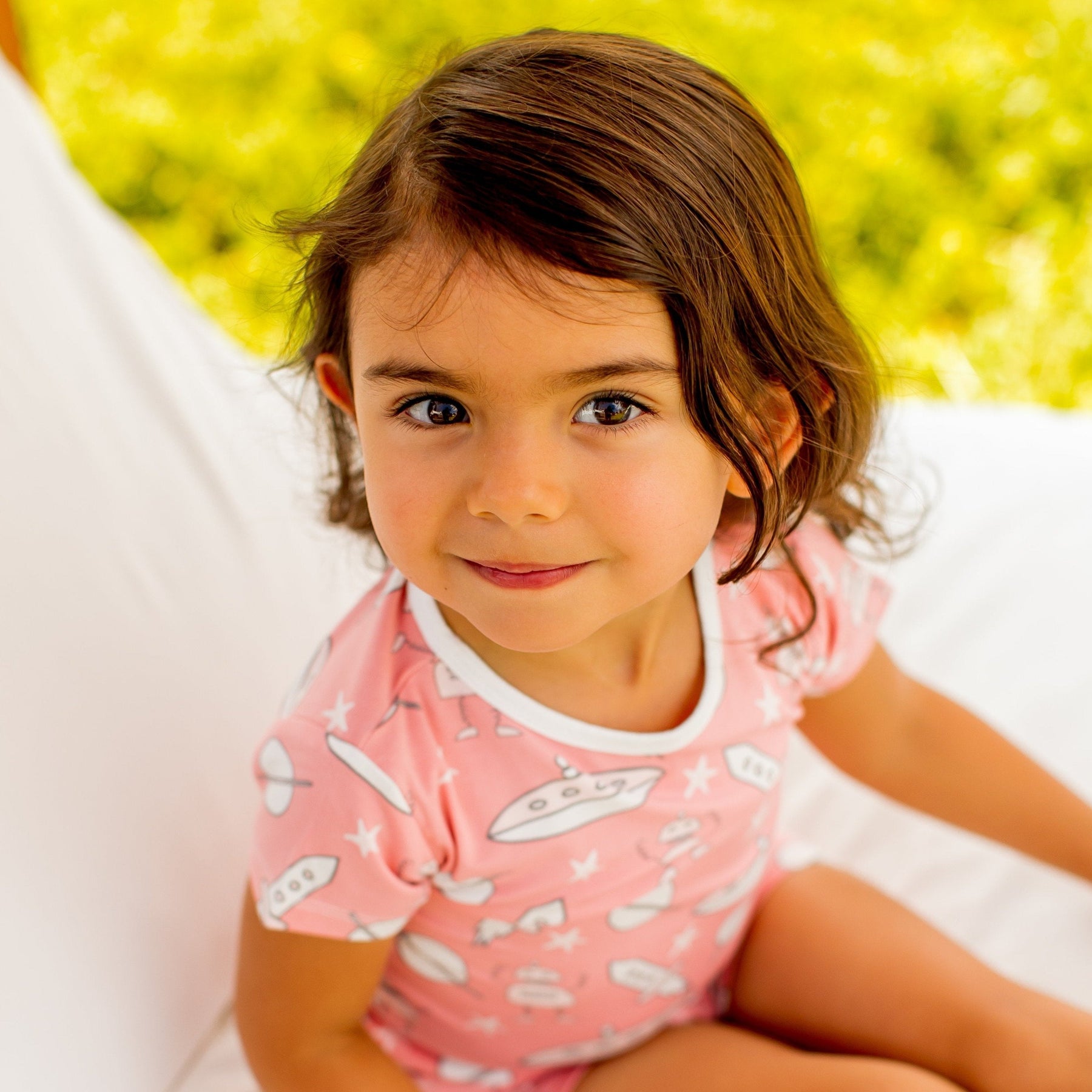 Our Summer Pajamas are as adorable as they are on the hanger. Your little one can show off their baby curves with this two piece short set. Scoop up a few sets of these light weight, super silky pajamas to get you through the summer.