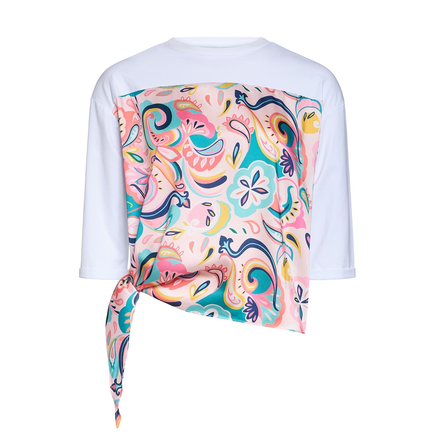 • Crafted with a silk paisley panel that drapes beautifully across the front, this top exudes a soft, fluid movement.