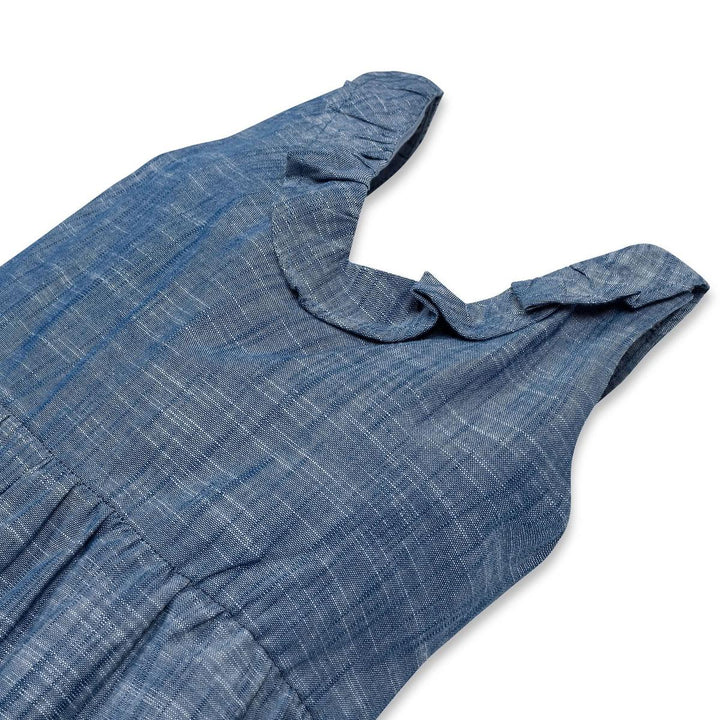 Our adorable ruffle neck jumpsuit in soft organic cotton will be your girl's go-to choice for spring days and summer vacations. Features a ruffle detail along the neckline, smocking in the back bodice for a comfortable pull-on fit, side pockets, and comfy wide legs. Get the camera ready with this light and breezy wardrobe staple!