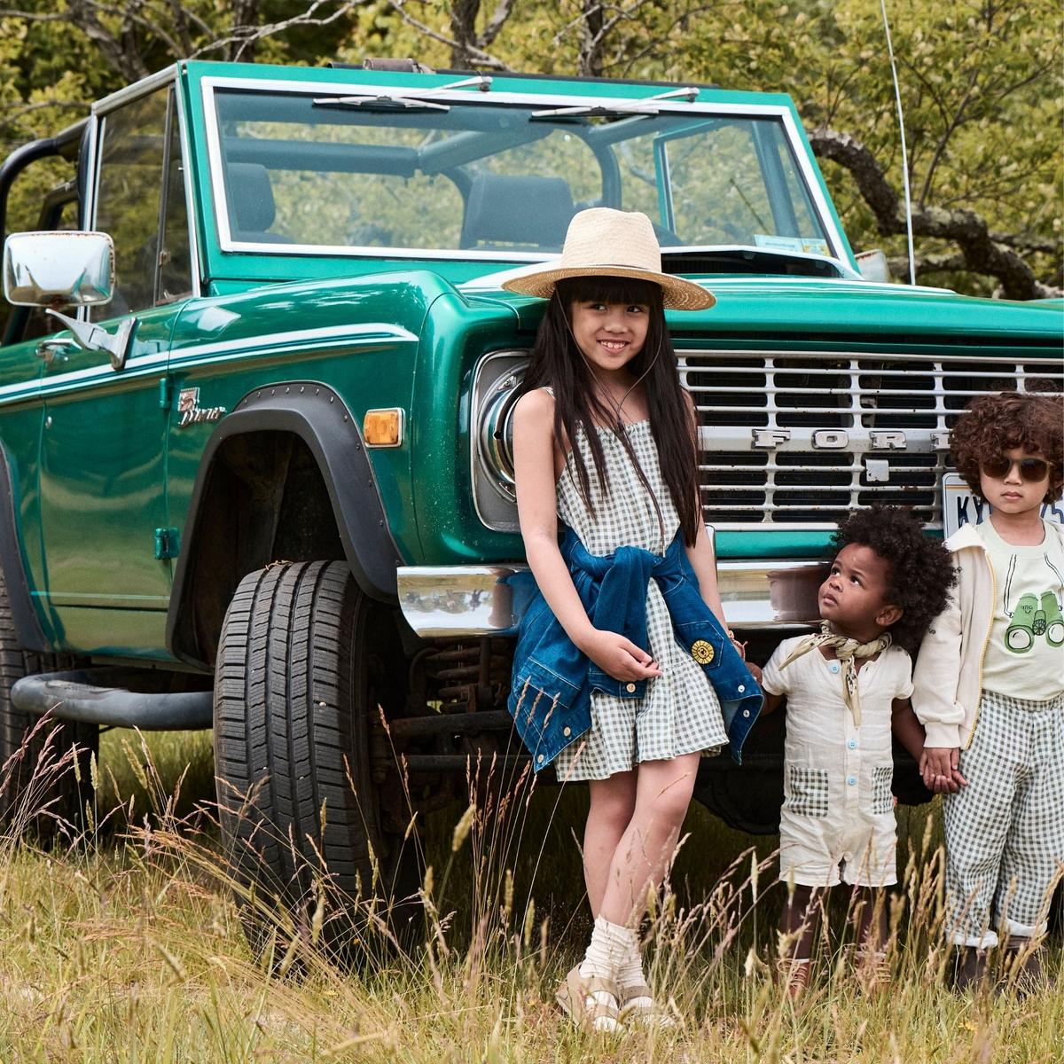Blue Gingham Linen Kid Dress - Natural/faded Denim