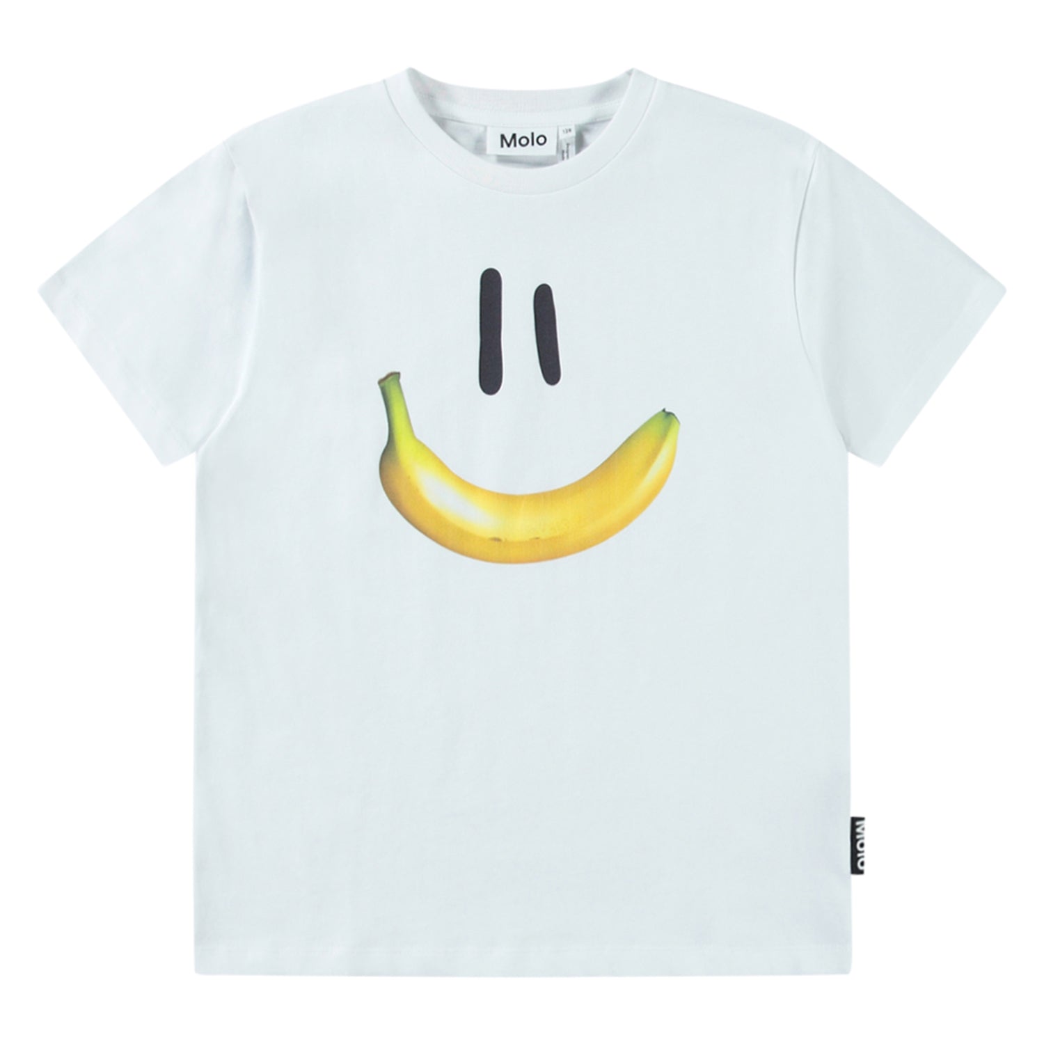 White t-shirt in soft organic cotton with short sleeves and ribbed neckline. The t-shirt has a loose fit and a front print of a smiling face with a banana mouth., White t-shirt in soft organic cotton with short sleeves and ribbed neckline. The t-shirt has a loose fit and a front print of a smiling face with a banana mouth., White t-shirt in soft organic cotton with short sleeves and ribbed neckline. The t-shirt has a loose fit and a front print of a smiling face with a banana mouth., White t-shirt in soft organic cotton with short sleeves and ribbed neckline. The t-shirt has a loose fit and a front print of a smiling face with a banana mouth., White t-shirt in soft organic cotton with short sleeves and ribbed neckline. The t-shirt has a loose fit and a front print of a smiling face with a banana mouth., White t-shirt in soft organic cotton with short sleeves and ribbed neckline. The t-shirt has a loose fit and a front print of a smiling face with a banana mouth.