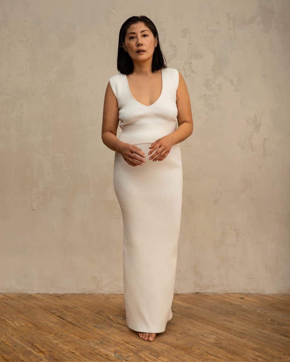 Skirt 01 is a full-length, plush knit designed to sit high on the waist. Ultra-flattering and effortlessly elegant, it was knit with 90% GOTS organic cotton using our zero-waste method, technical knitting. With it's heavy drape, ribbed detail, and back vent, its a versatile, refined staple for the modern capsule wardrobe. Made with 90% GOTS-certified Organic Cotton, 10% Elastane.