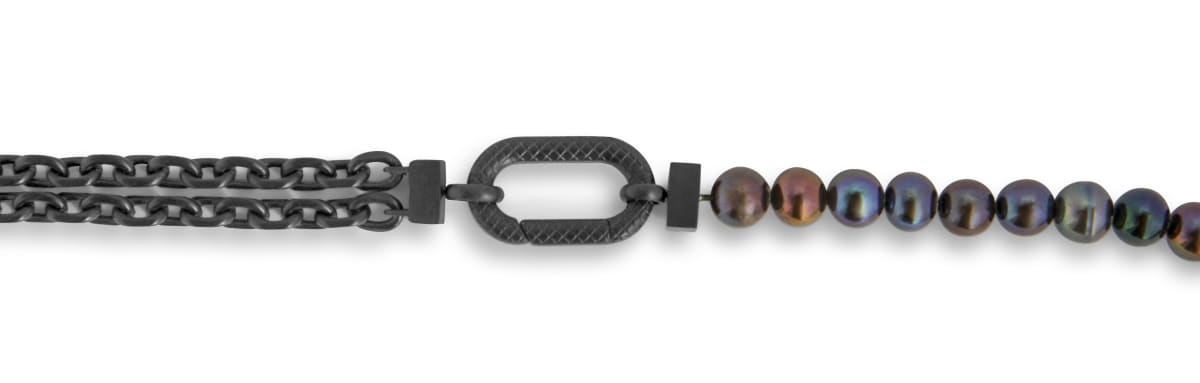 Black Ip Stainless Steel Catena Isaac Necklace With Black Pearls - Black