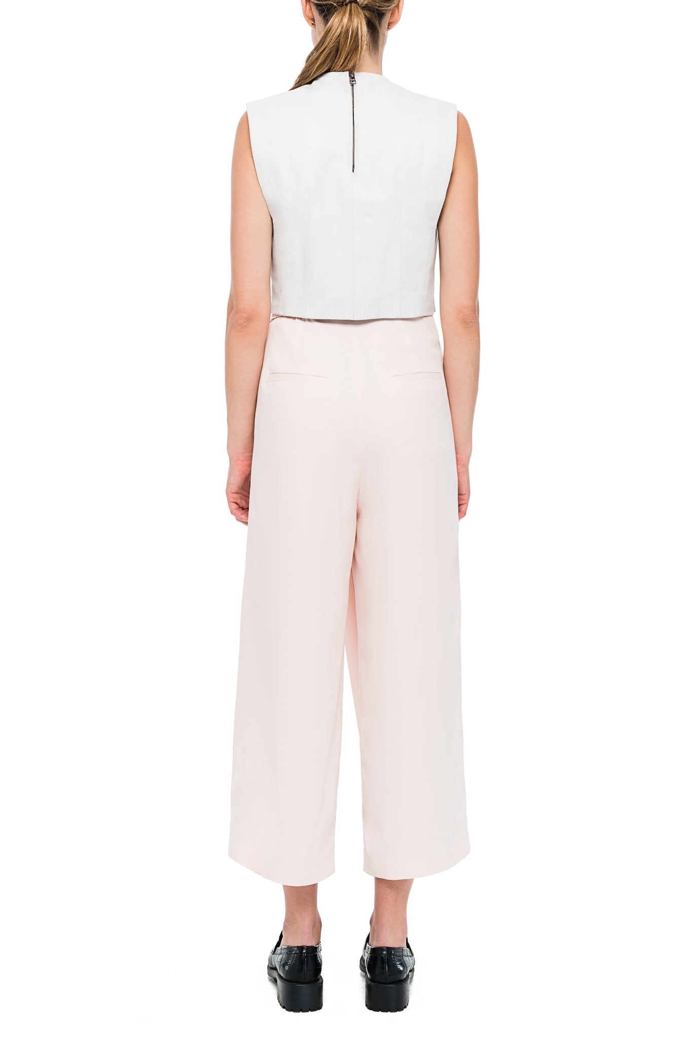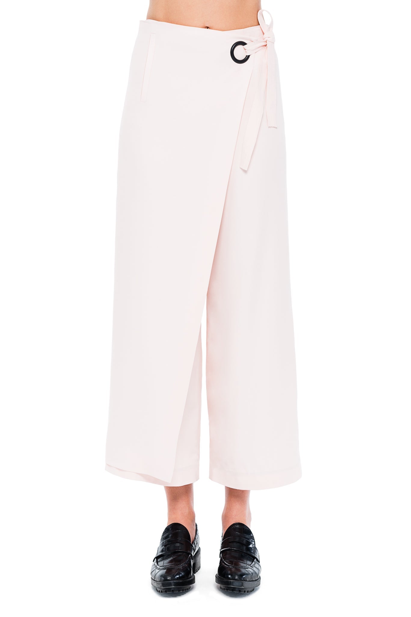 The ‘Frederike’ pant is a hybrid between a skirt and a pair of trousers with an asymmetrical front panel tied back with a grommet detail, this season’s motif. In viscose, the pant maintains a sense of youth and versatility with its cropped length and pastel color tones.