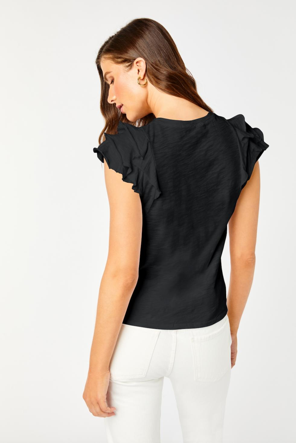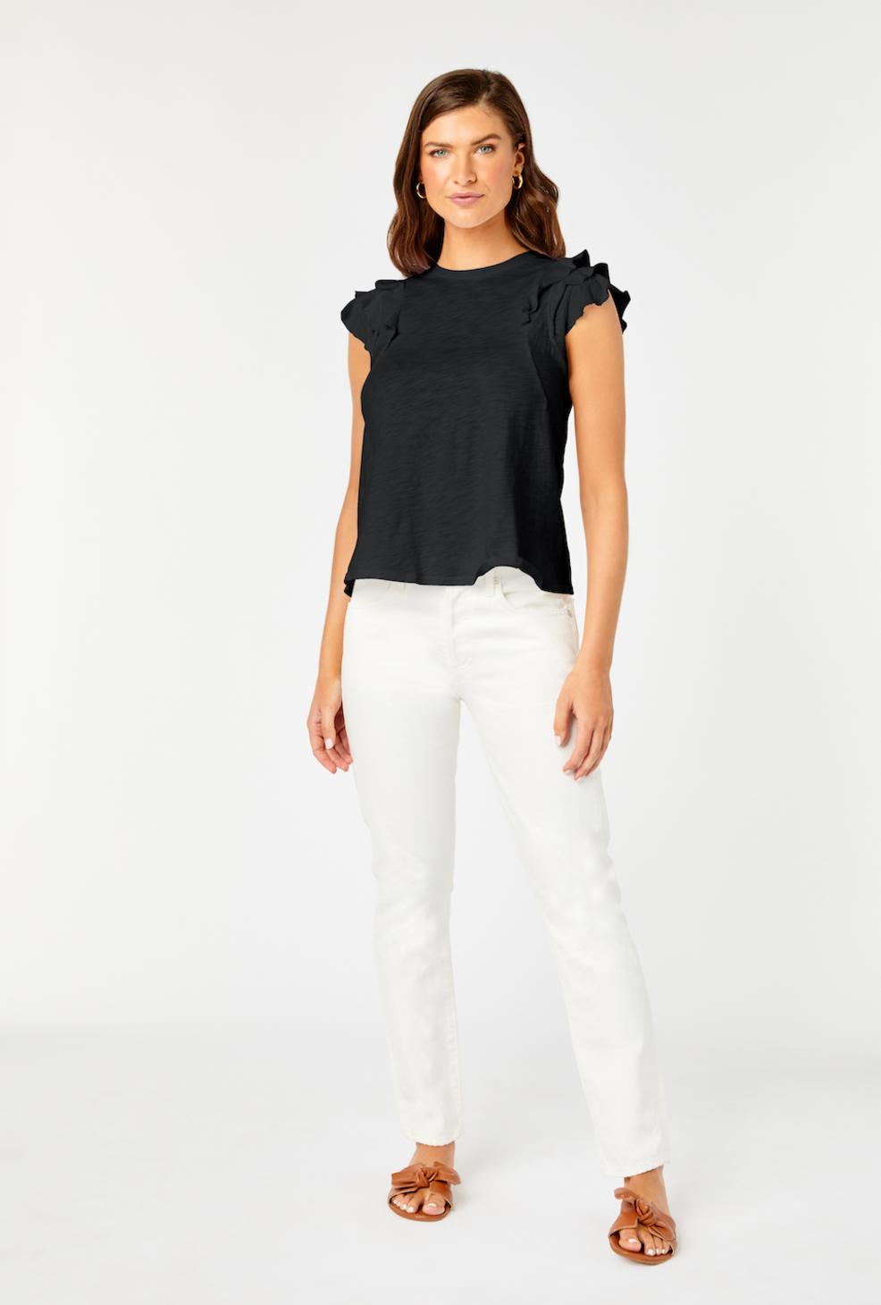 Our new Ruffle Sleeve Tee has an A-line silhouette in a 100% Organic Cotton Slub Knit fabric. We have partnered with a family-owned mill in Los Angles where the fabric is weaved and garment-dyed. This tee is a crew neck with triple raw edge ruffle sleeves. Designed, weaved, dyed, and sewn in Los Angeles.