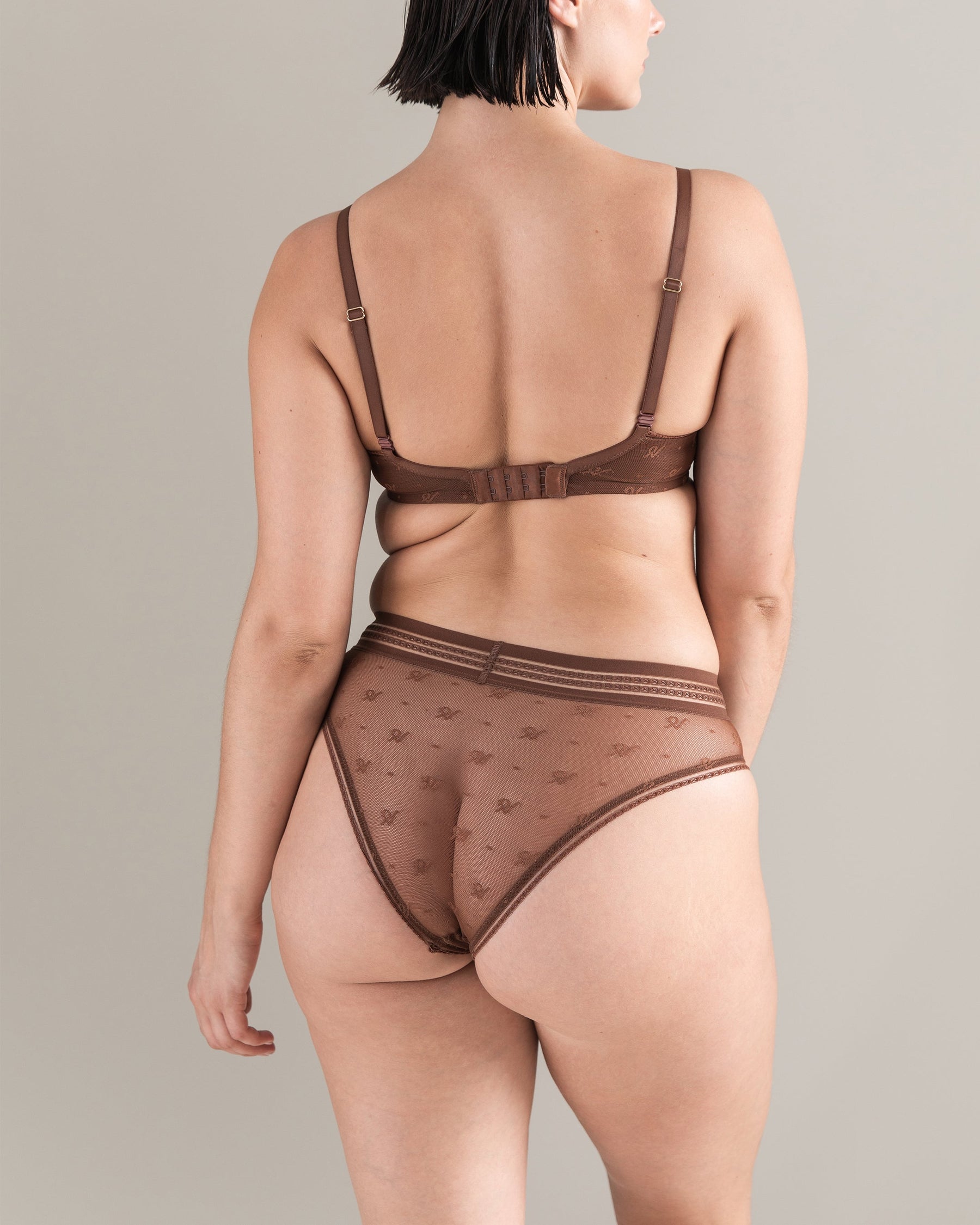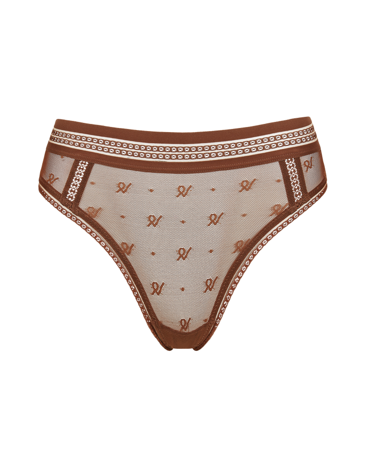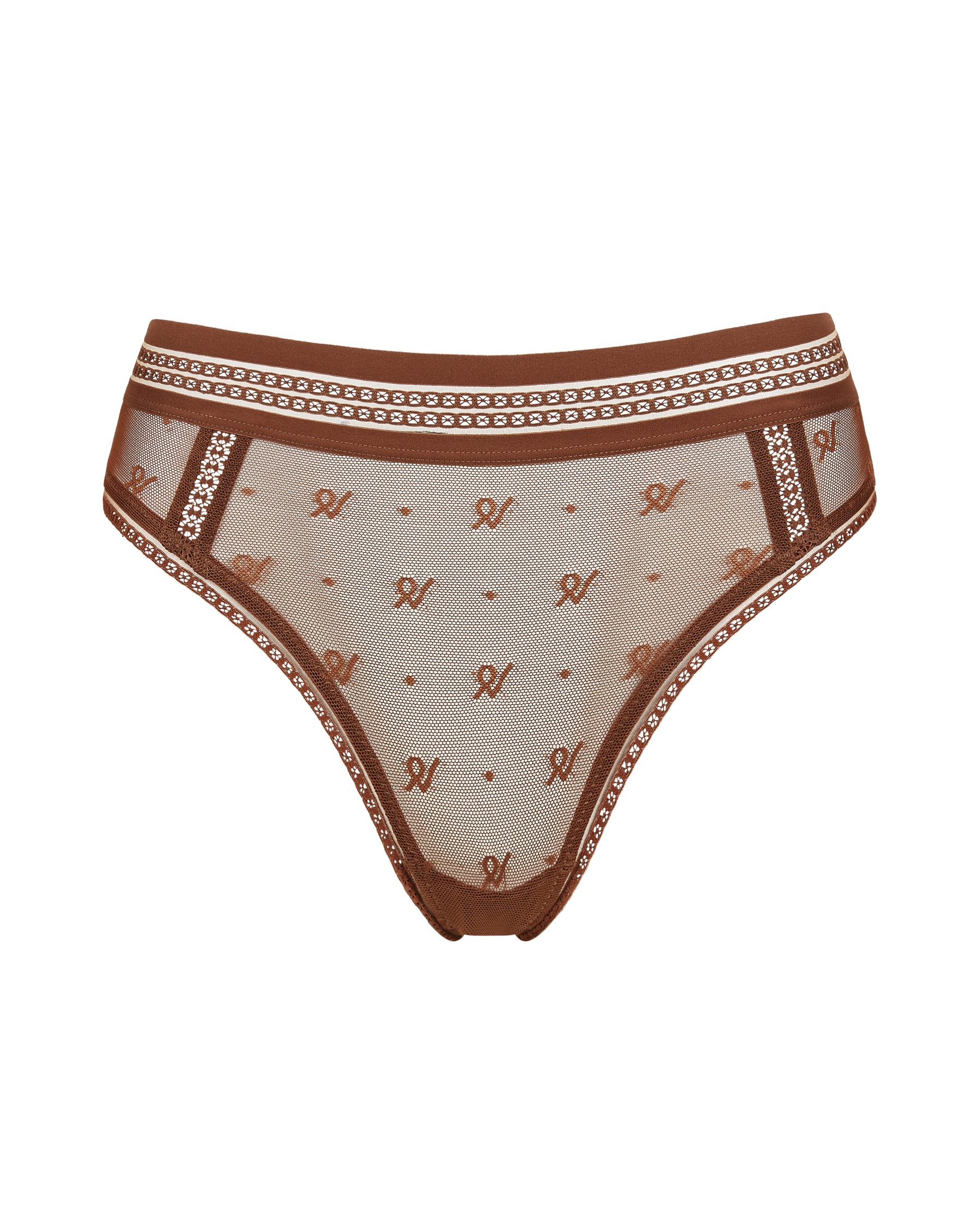 Mid-rise with a cheeky back. Crafted in our bespoke sheer fabric, featuring the eponymous ’N’ monogram and adorned with decorative elastic trims for a smoothing, flattering silhouette.