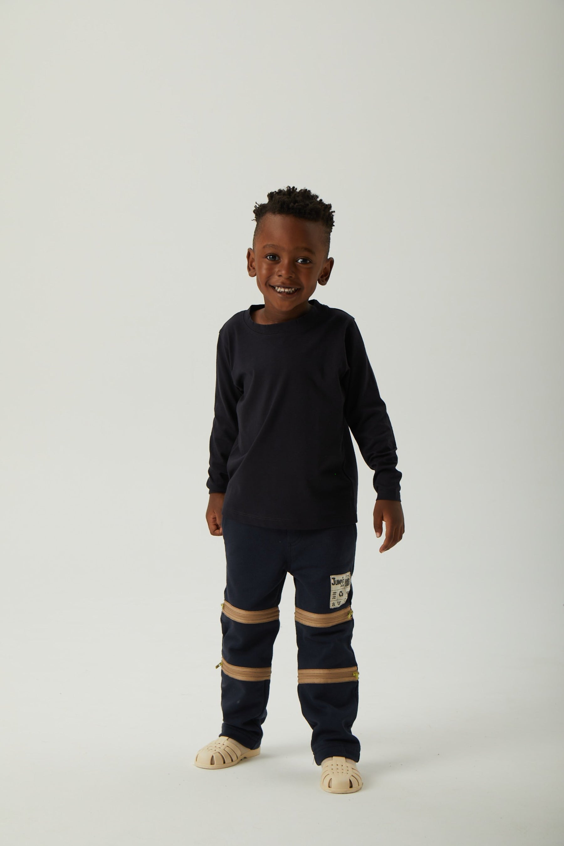Relaxed Fit Joggers β€” Transformable & Sustainable GOTS & OEKO-TEX Certified | Patented Modular Design 100% cotton (3-thread), GOTS certified Removable zippered knee pads Zippers OEKO-TEX certified Adjustable buttoned elastic waistband Side pockets Logo label on the left leg Name label in the inner lining All labels made of 100% cotton Unisex Made in Turkey Packaging: Each product is packed in a branded, reusable ZIP bag.