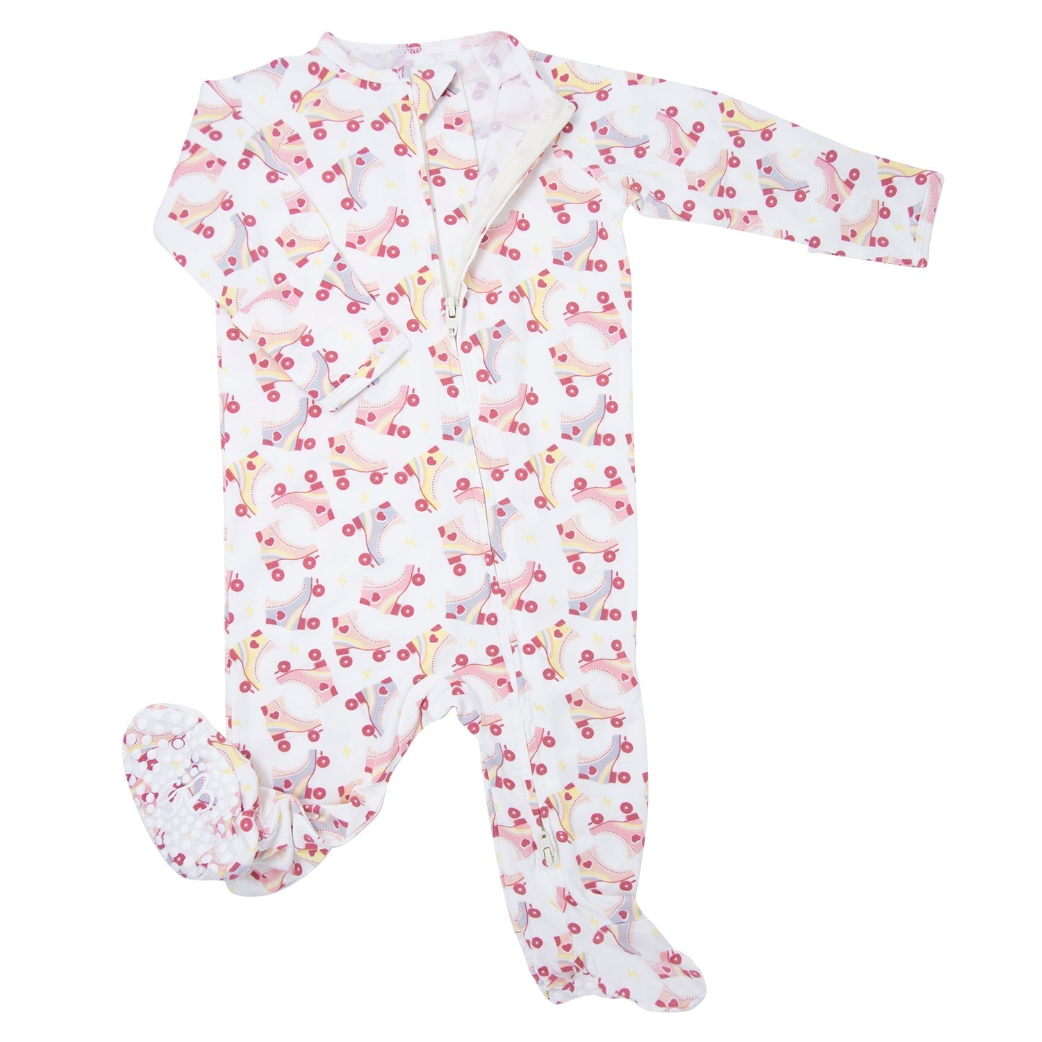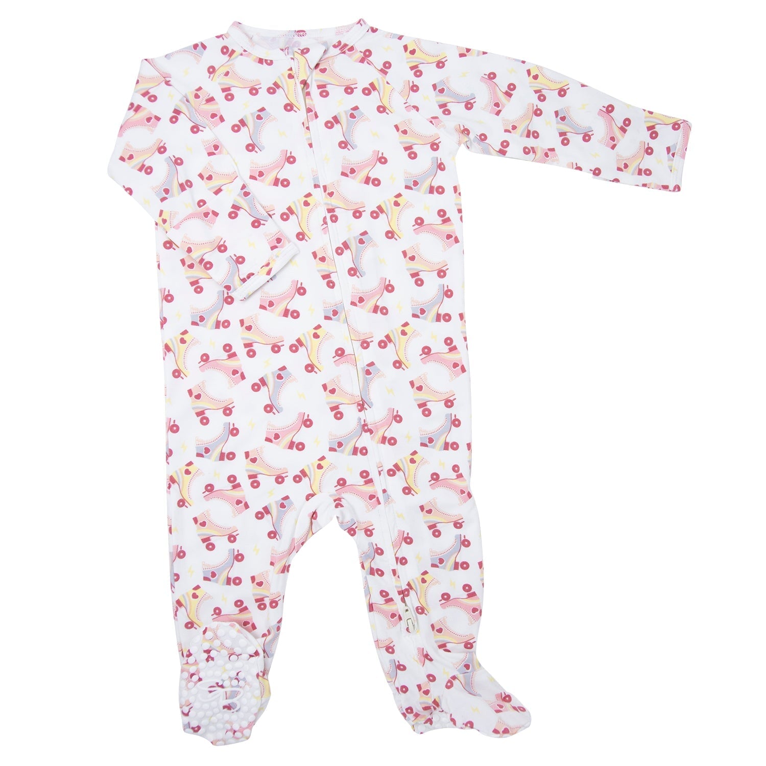 Ask and you shall receive. This yummy footie is equipped with a smooth 2-way zipper, silicone grips on the foot pads and fold-over handcuffs. Plus our silky-soft fabric hugs in all the right places to show off those baby curves.