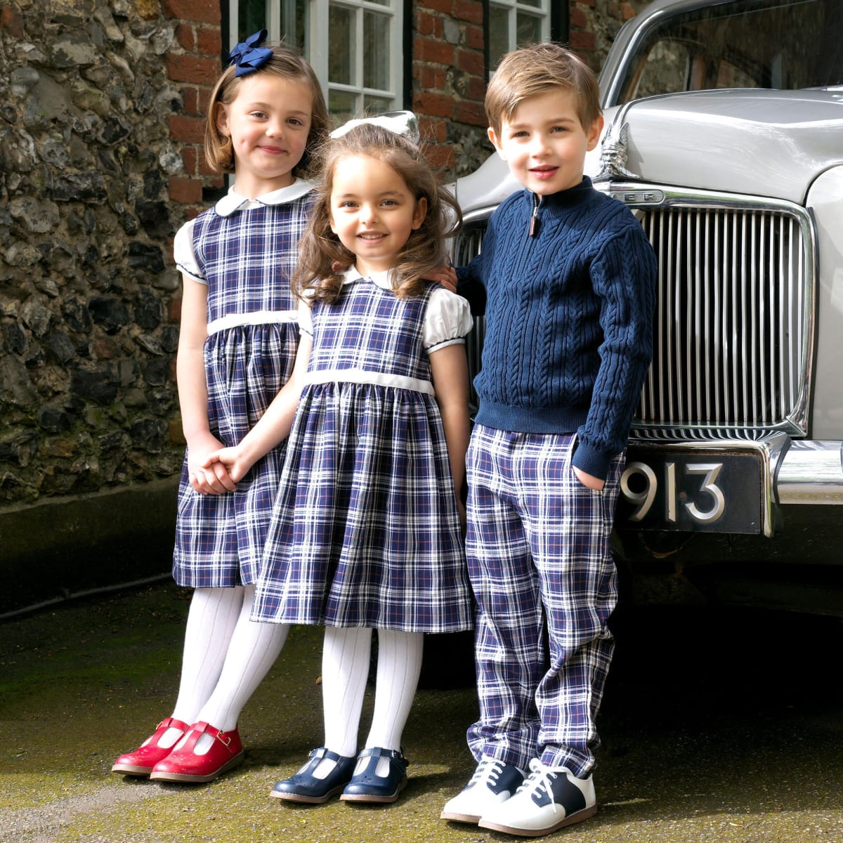 Bring a playful touch to your little one's wardrobe with these Check Trousers. Crafted in a vintage inspired navy and ivory check pattern, these trousers feature side and back pockets, elasticated waist, and belt loops. He'll look dapper, no matter the occasion.