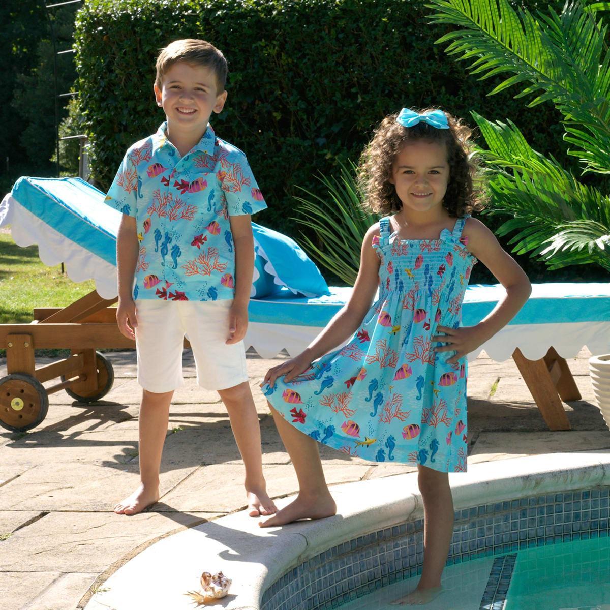 This stylish shirt features a fun coral reef print in soft cotton.
