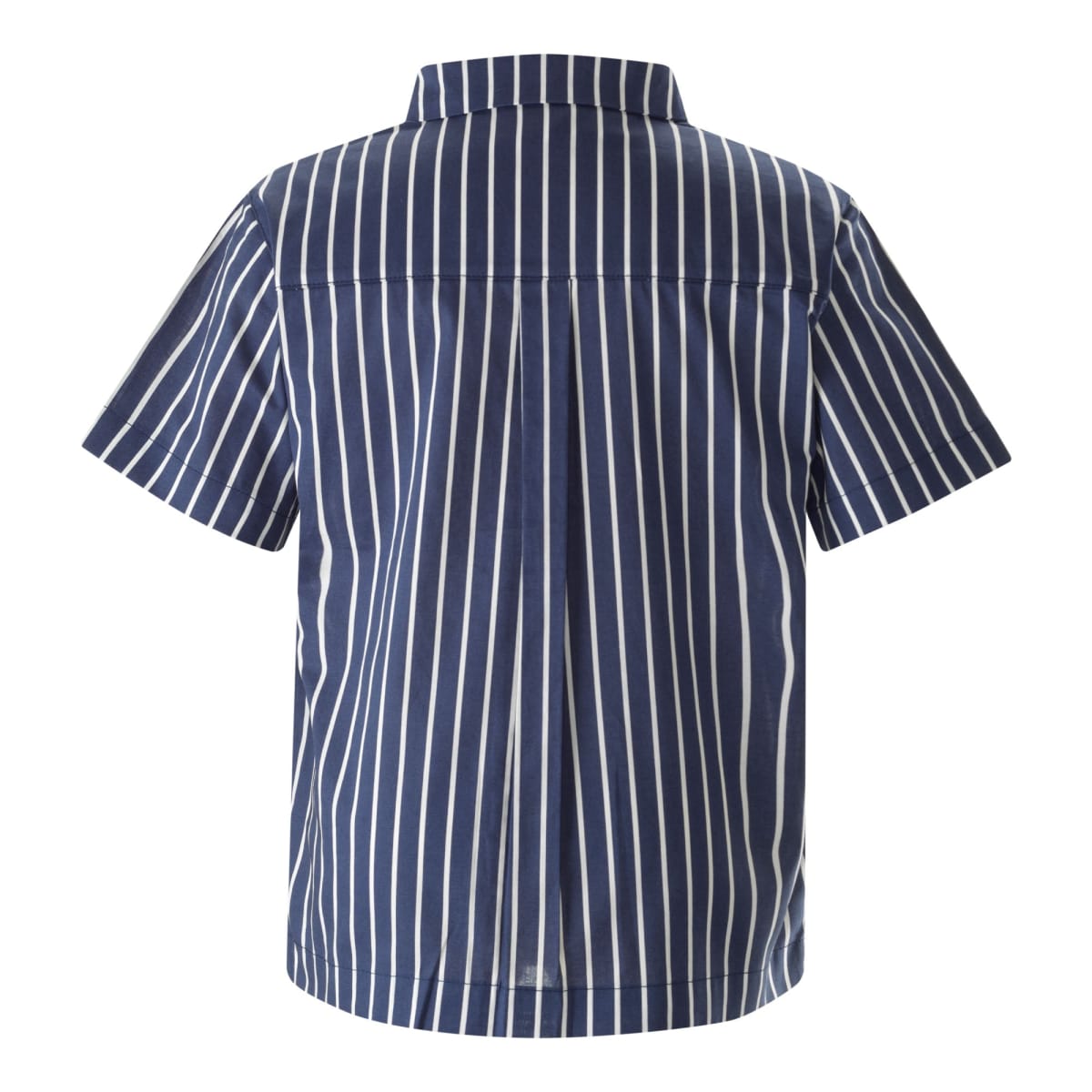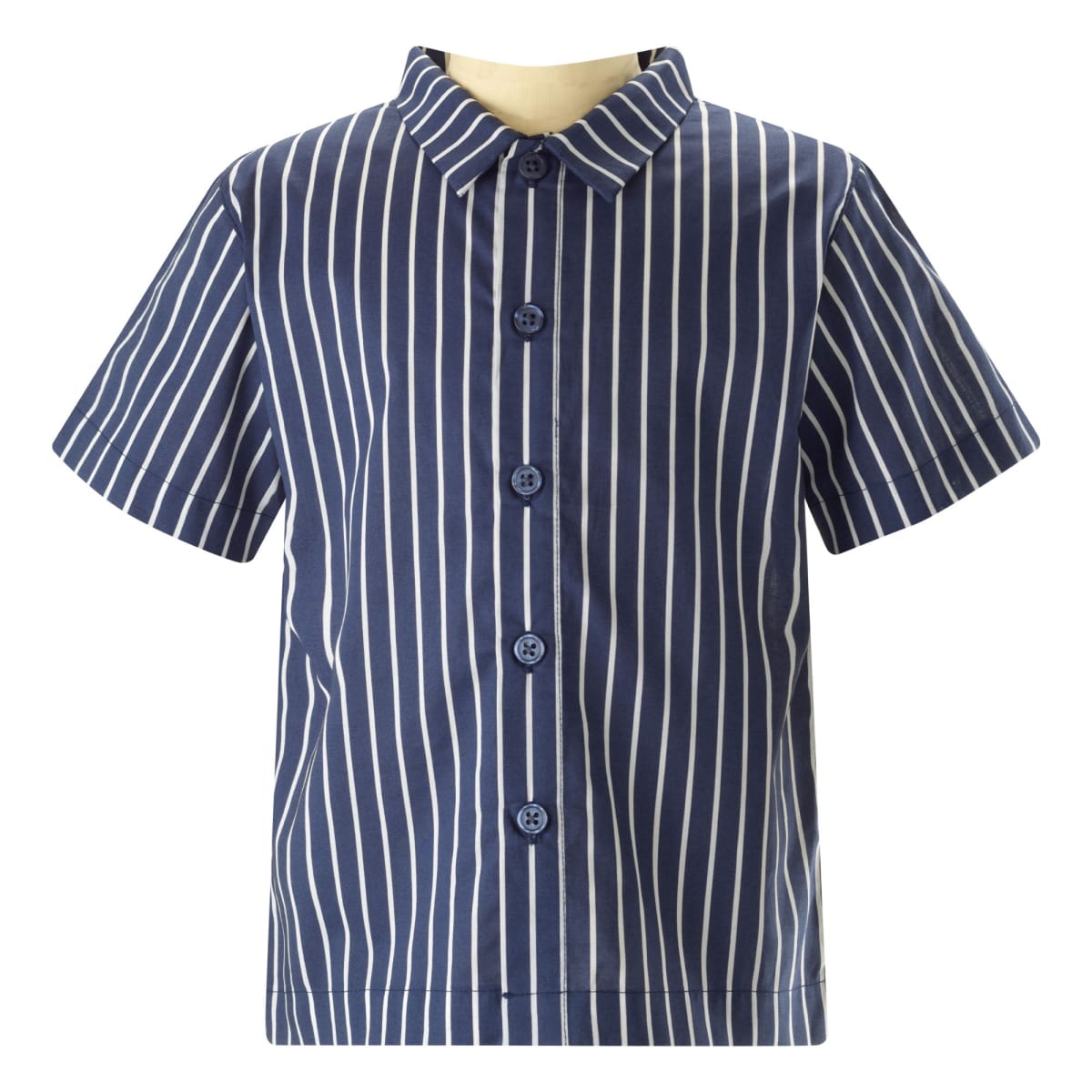 Add a pop of personality to your little one's wardrobe with our Striped Shirt. Featuring a classic collar and a playful navy and ivory stripe pattern, this lightweight cotton shirt is versatile and smart, perfect for elevating any outfit.