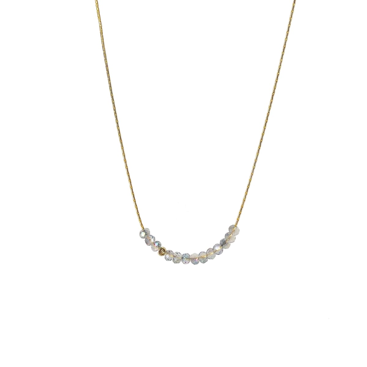 A handmade luminescent necklace made of shiny grey mini-beads that brightens any look.