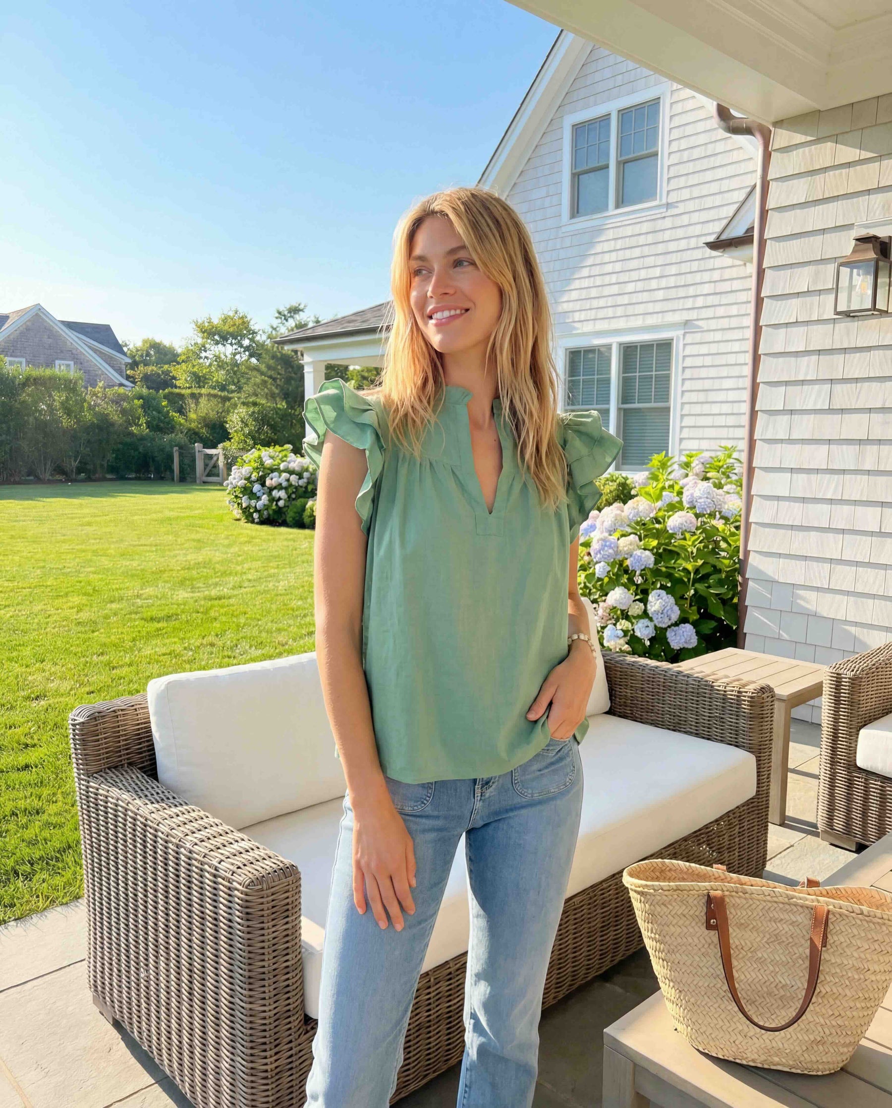 Our playful Flutter Sleeve top perfect for warmer weather in vibrant green cotton voile.