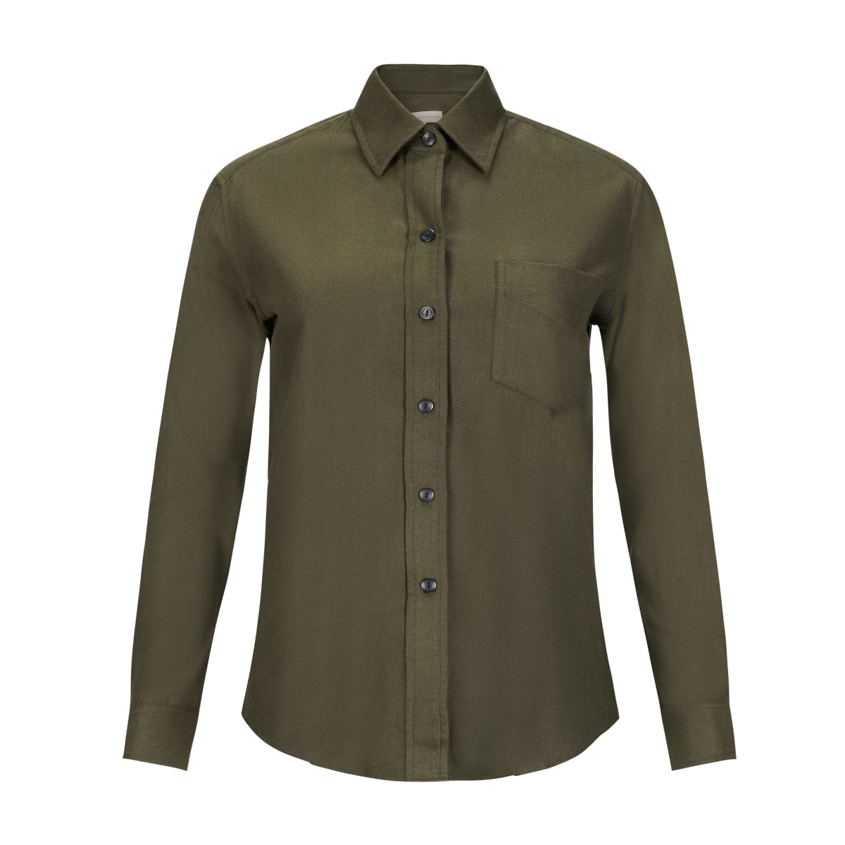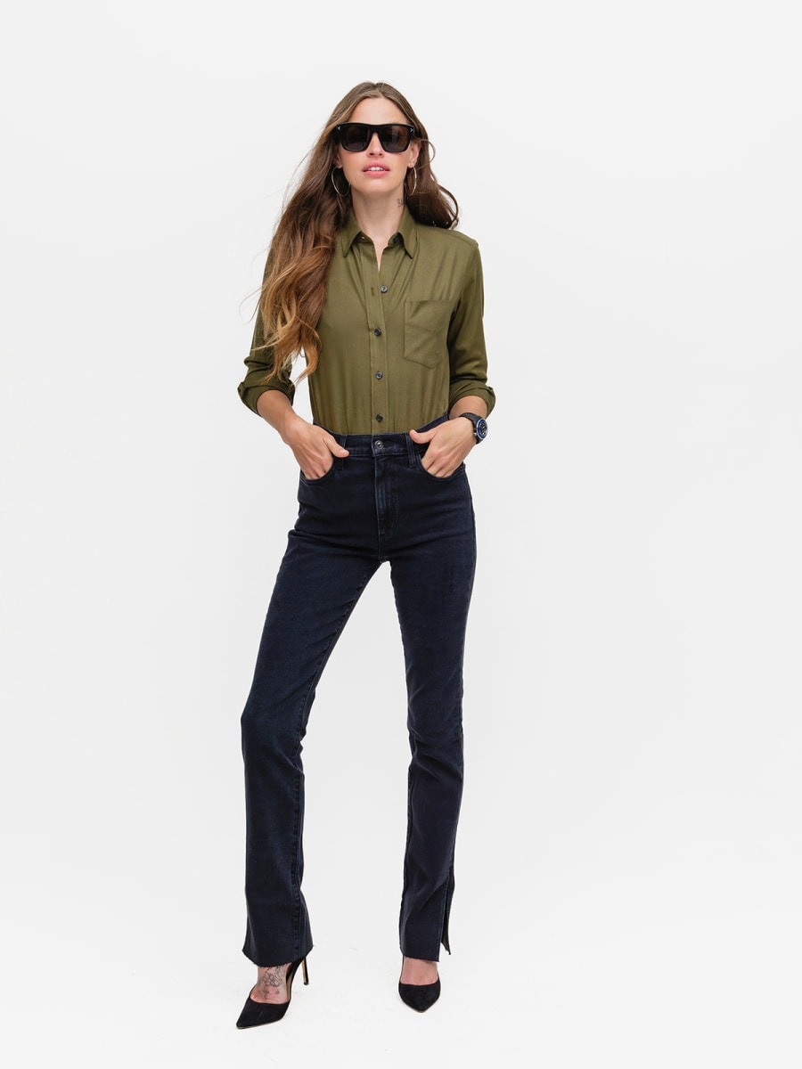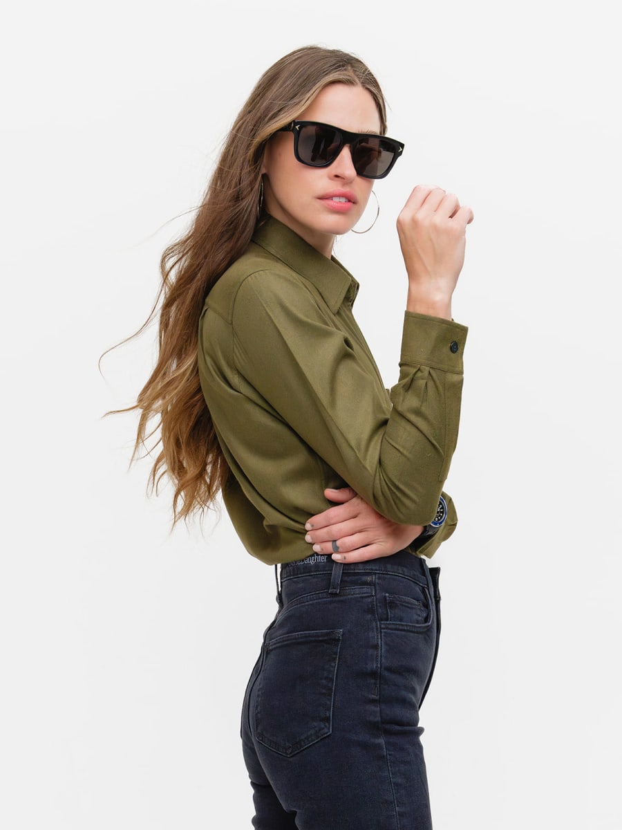 Our menswear inspired Weekend Shirt in a stylish military green cotton blend.