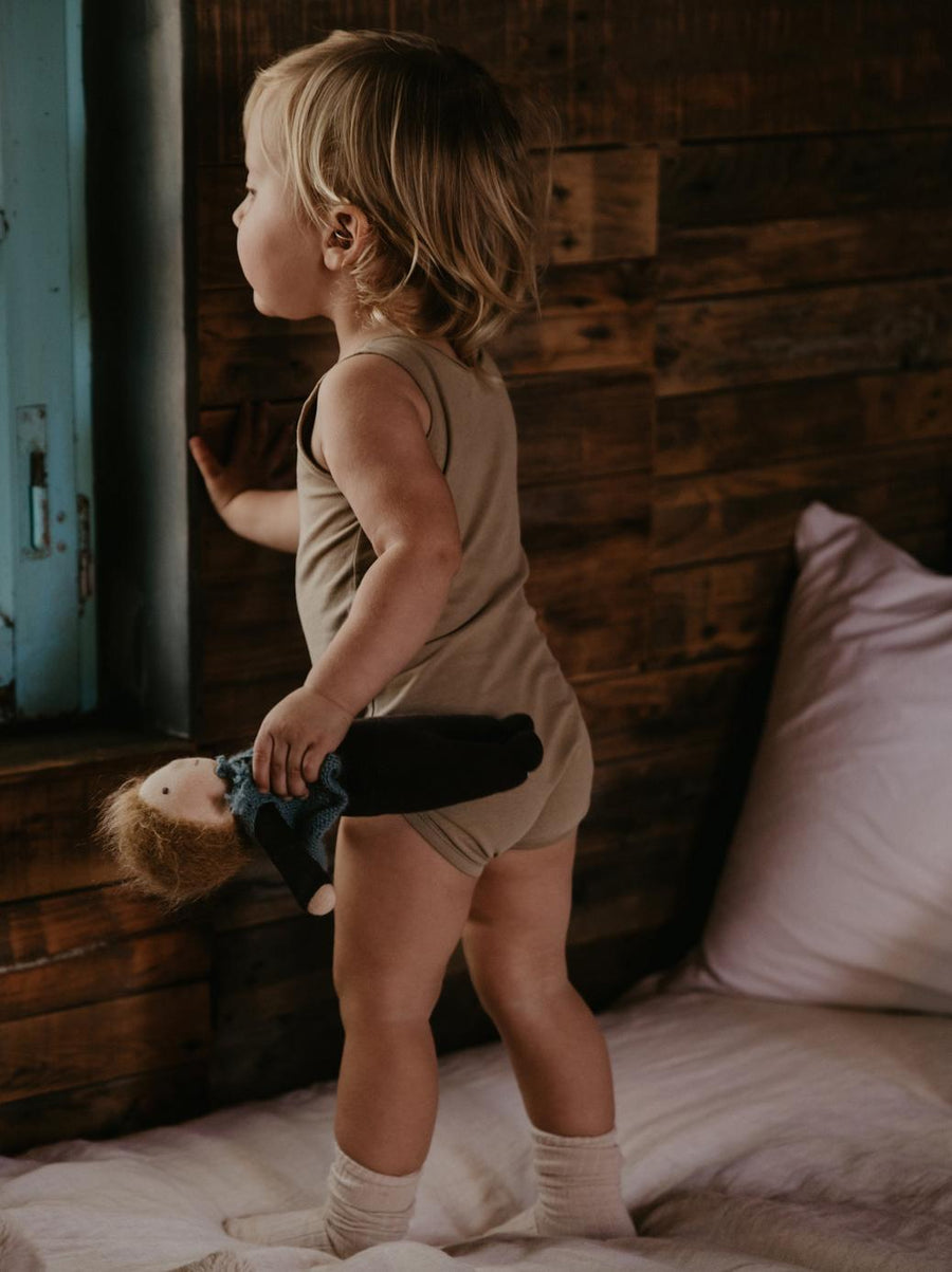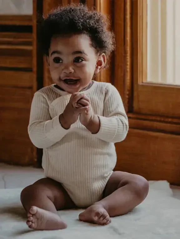 Our unisex bodysuit is designed to make your life easy. Overlap shoulders make it a cinch to put on over baby’s head. And snaps at the inseam make diaper changes, well, a snap.
