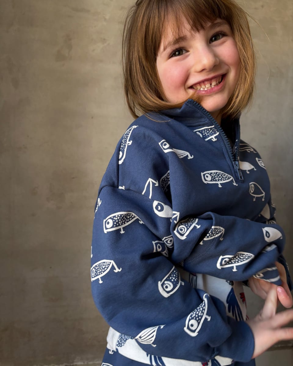 Our new kid's Quarter Zip Pullover is as cute as can be. Just as cozy as a sweatshirt with a zip at the neck, front pouch and slight crop–it's the perfect spring layer.