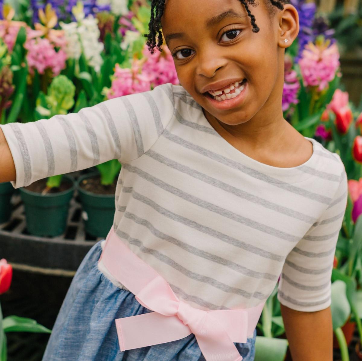 Lightweight Blocked Organic Skater Dress - Gray Stripe with Chambray
