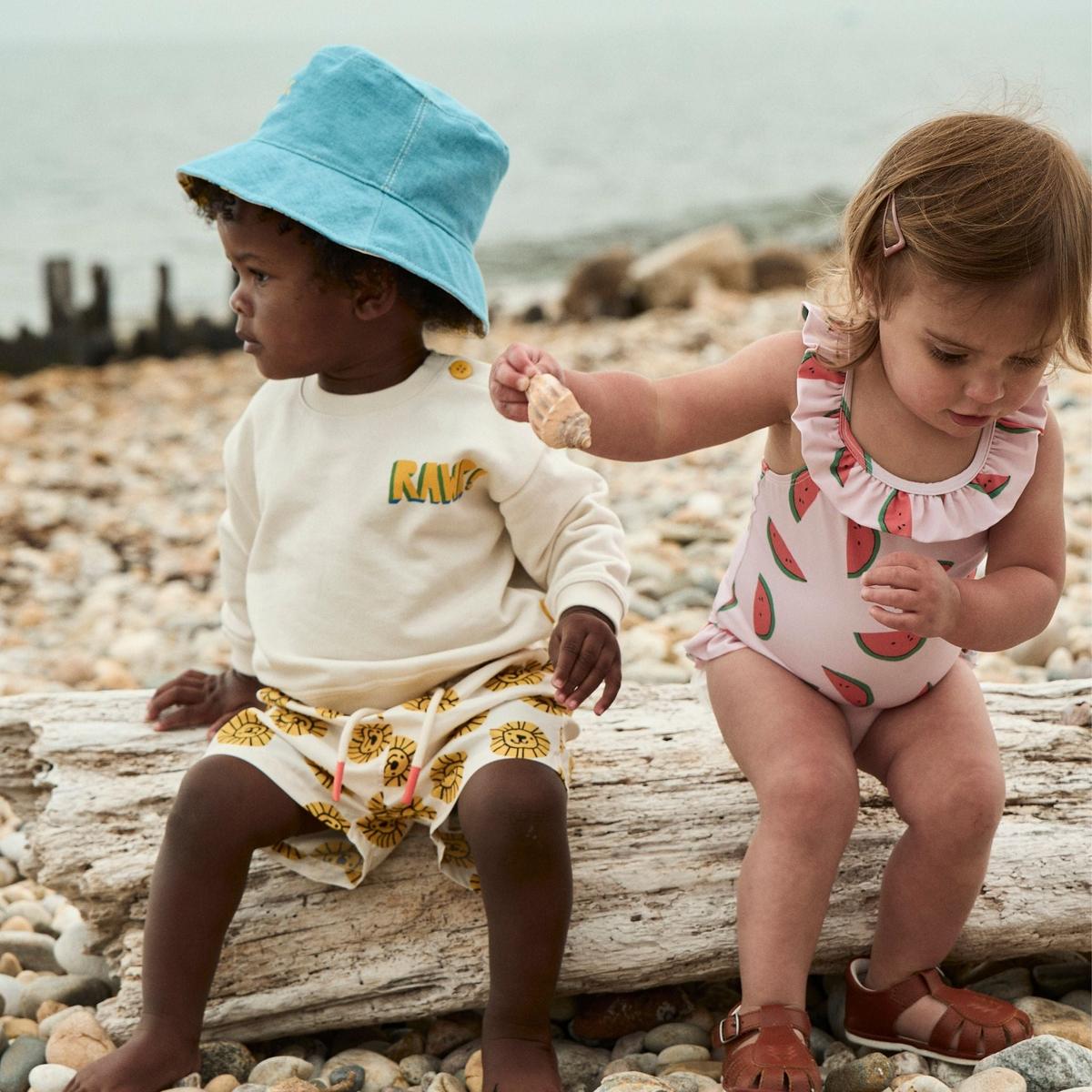 Recycled Polyester Watermelon Slices Ruffle Baby Swimsuit - Sepia Rose/multi