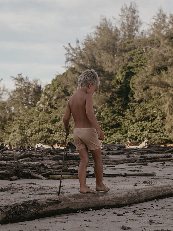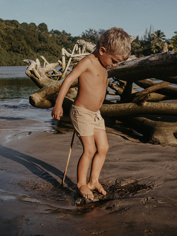 Transformed mindfully from waste to wear, our soft and stretchy unisex swim trunk is SPF 50+ and chlorine resistant, and features a retro style and an adjustable natural rope tie for the perfect fit. The perfect piece for mixing and matching, our swim trunk can be paired with either our Bikini Top or Swim Top to create your favorite look.