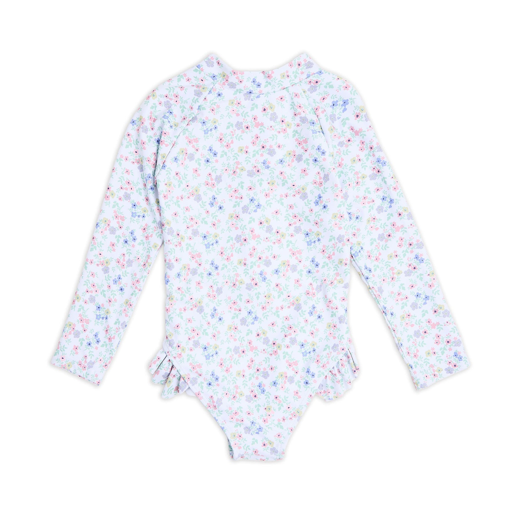 Rashguard swimsuit in an exclusive floral print. Zip up front for easy dressing. UPF50+ and quick dry capacity. Composition: Recycled 80% polyester, 20% elasten.