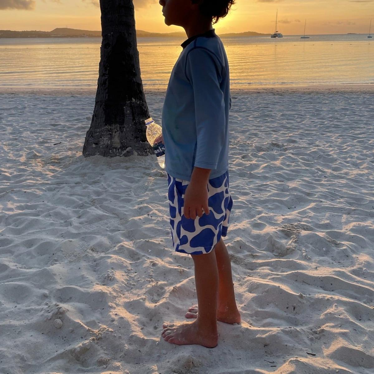 Seaqual Recycled Polyester Spotted Giraffe Baby Swim Trunks - Natural/baja Blue