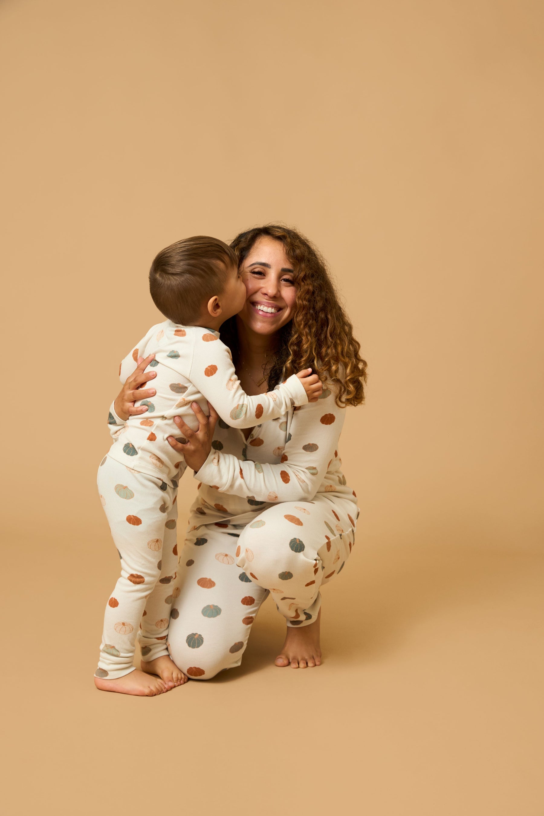 Our Rosewood Pumpkins print features earth-toned pumpkins against a rich off-white background, making it a versatile, gender-neutral option for all of Pumpkin Spice (Latte) season! And don't forget to grab a match for your mini - this one is great for boys and girls!